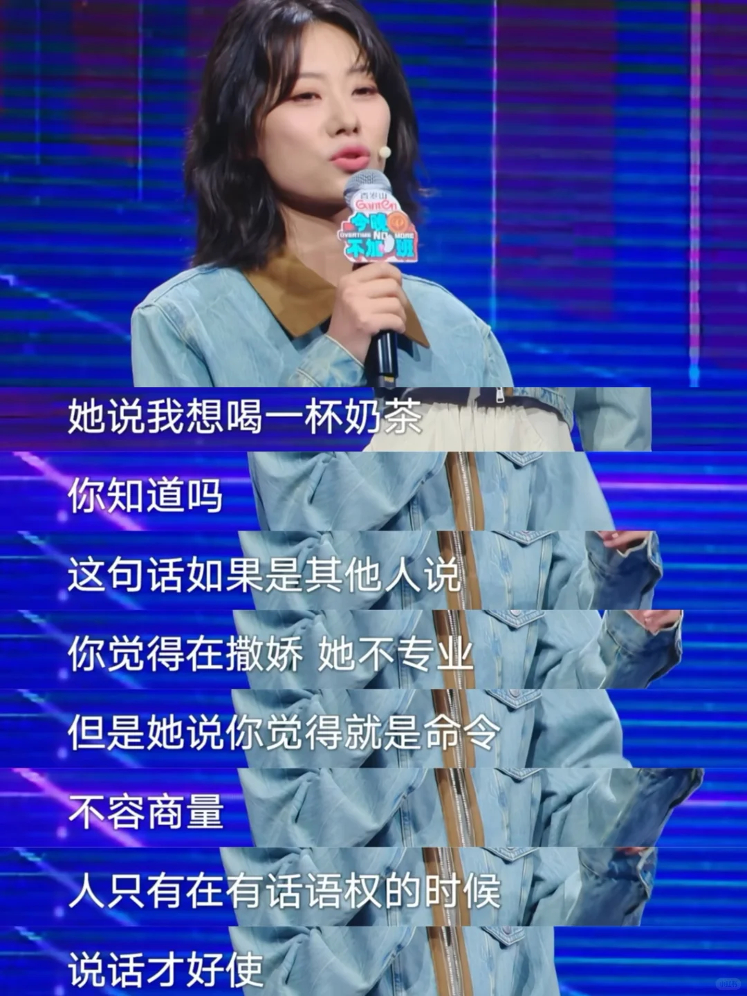 跟客户聚餐,对方是个女领导,当所有人都问她想喝什么8+1的时候,她却说:“我想喝一杯奶茶。”这就是女领导的含金量!!这就是女性上桌给这个世界带来的美好改变!!!女性上桌的意义,从来不只是坐下,更是改变桌上的游戏规则‼️还有提到邵艺辉导演这段也很触动我:👉“你就觉得她在这个行业里这样可以,那我应该也可以,所以现在我就多了一分坚持小声说话的底气。”尤其是这句“她可以,那我应该也可以”喜剧之王单口季一年一度喜剧大赛