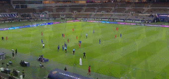 亚冠联赛 卡点儿失败!迪拜青年国民打算偷日本人一把,在他们完成换人流程的瞬间掷界外球,然后快攻给前场的归化外援,计划执行得很完美,球给到后场队友,后场长传到左路的吉列尔梅,吉列尔梅没啥人防守,迅速内切远射绝平,太燃了!