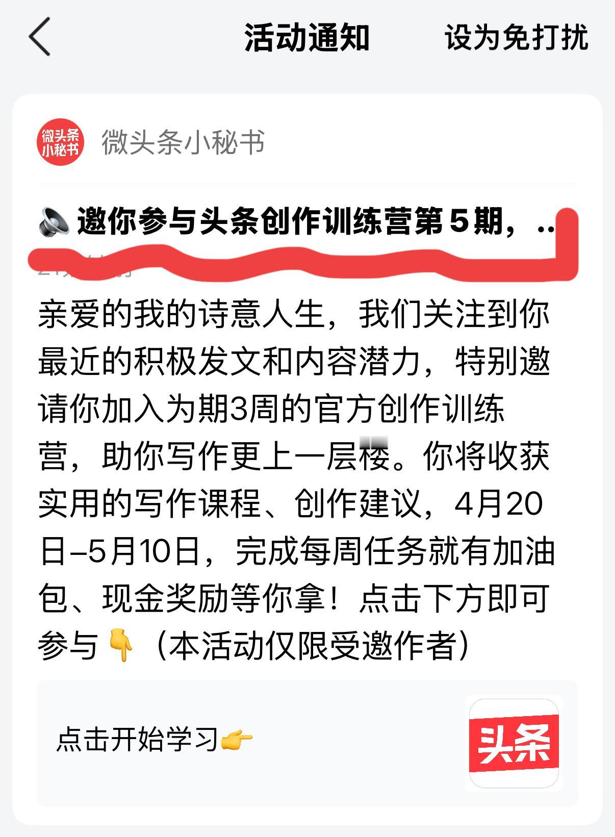 你收到参与头条创作训练营第5期的通知了吗? 类似的通知,一概视而不见,不需要谁教我怎么写,我想怎么写就怎么写,这是我来头条的目的 如果左一个规矩,右一个框框,那样的话还有什么意思呢? 我只喜欢天马行空的感觉 谁也甭想束缚我的手脚, 否则就失去了来头条的意义[祈祷]