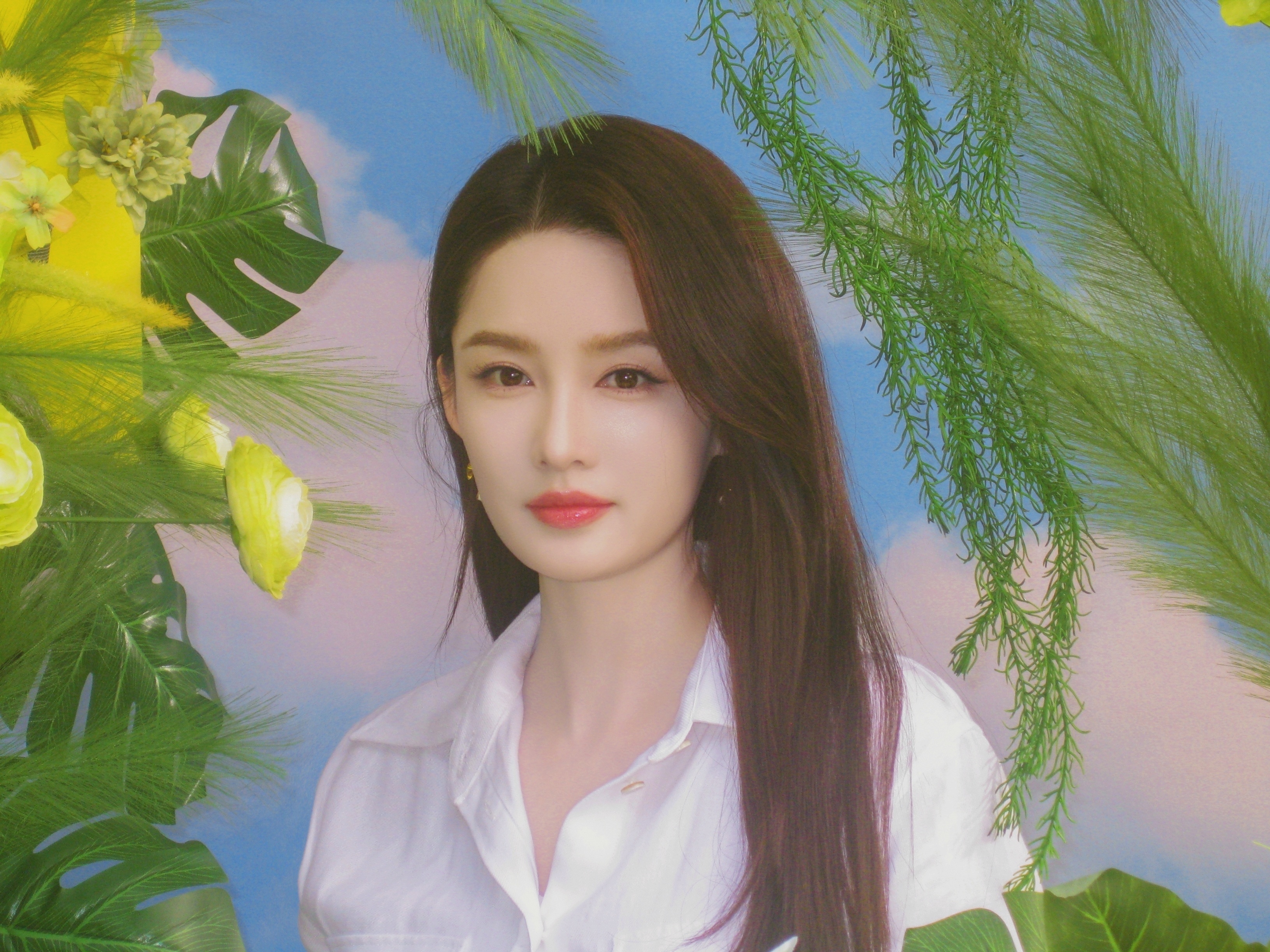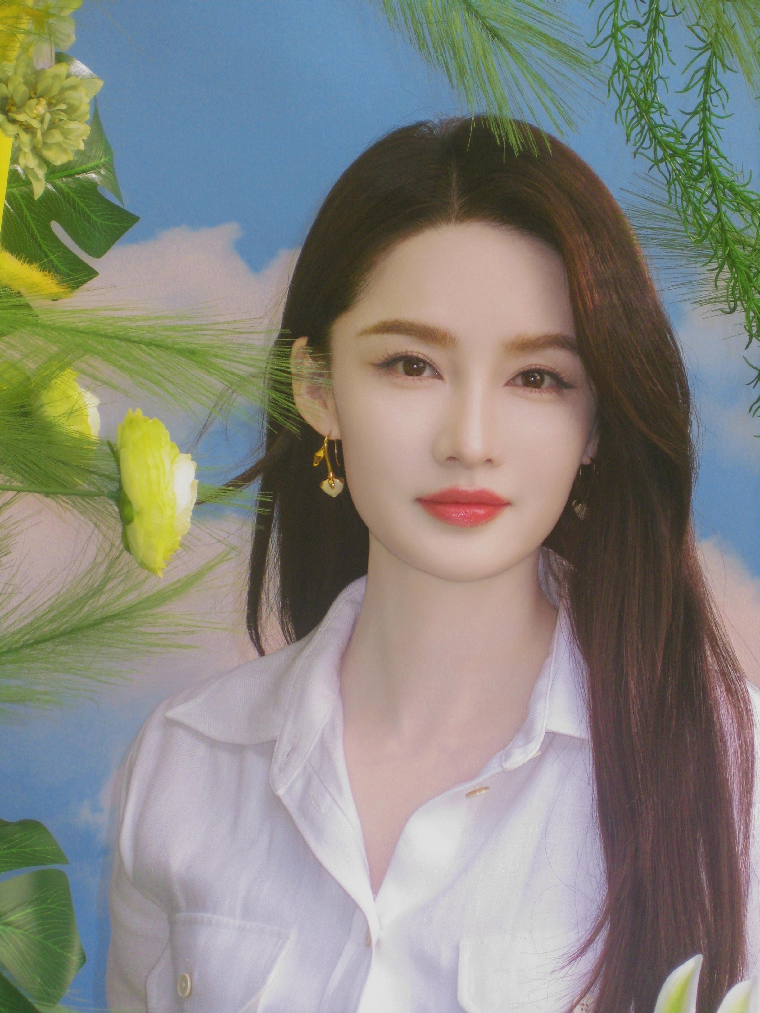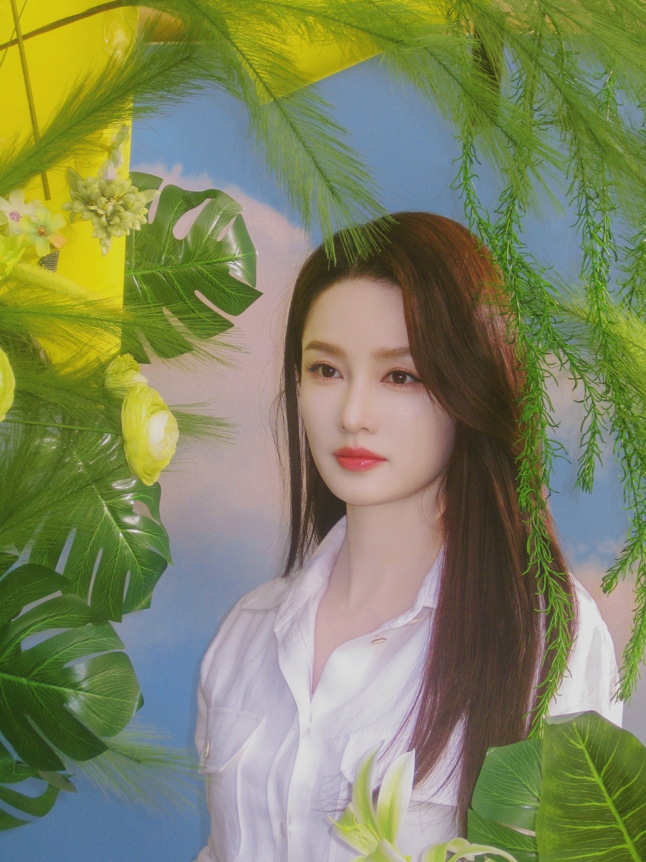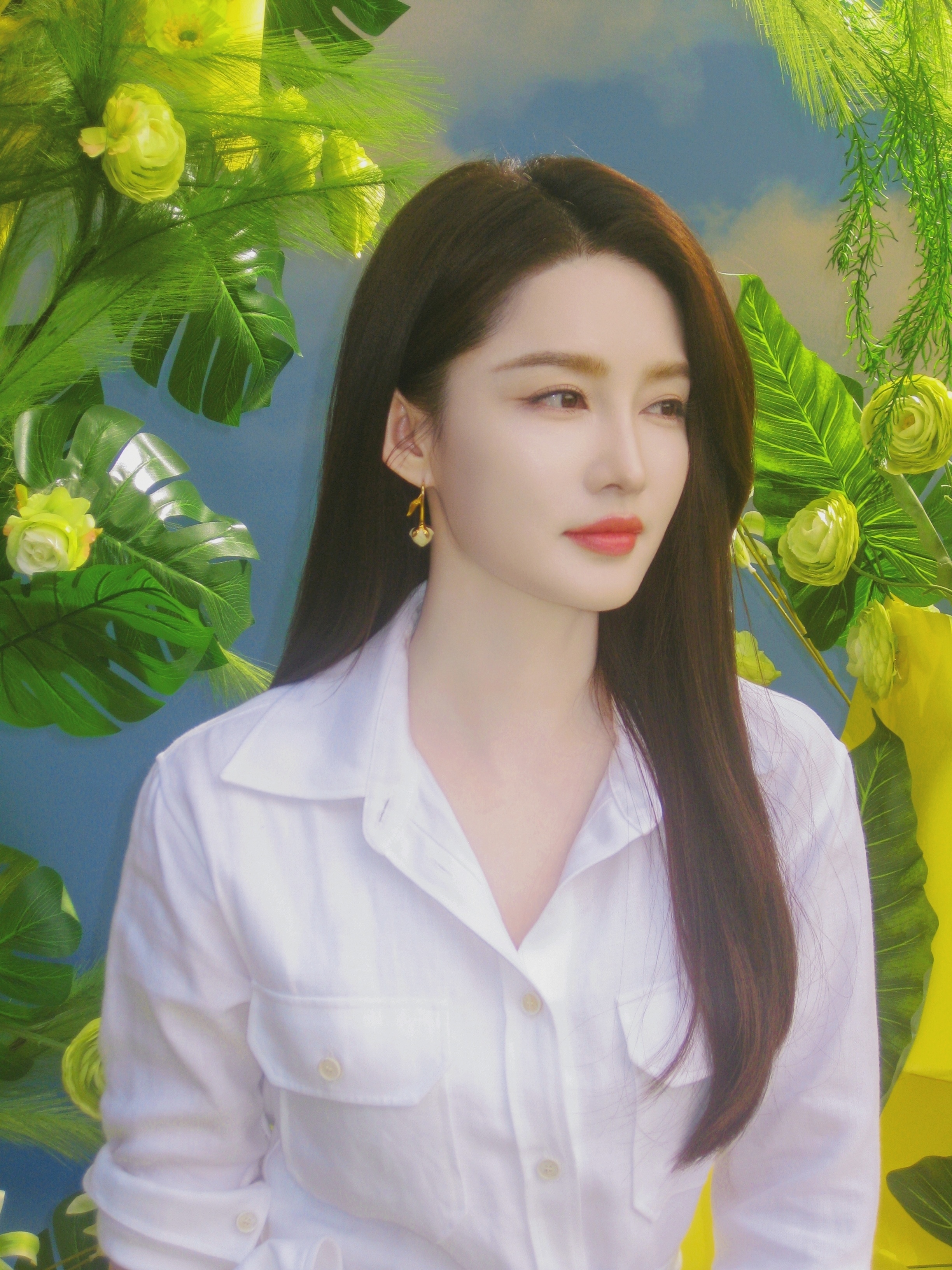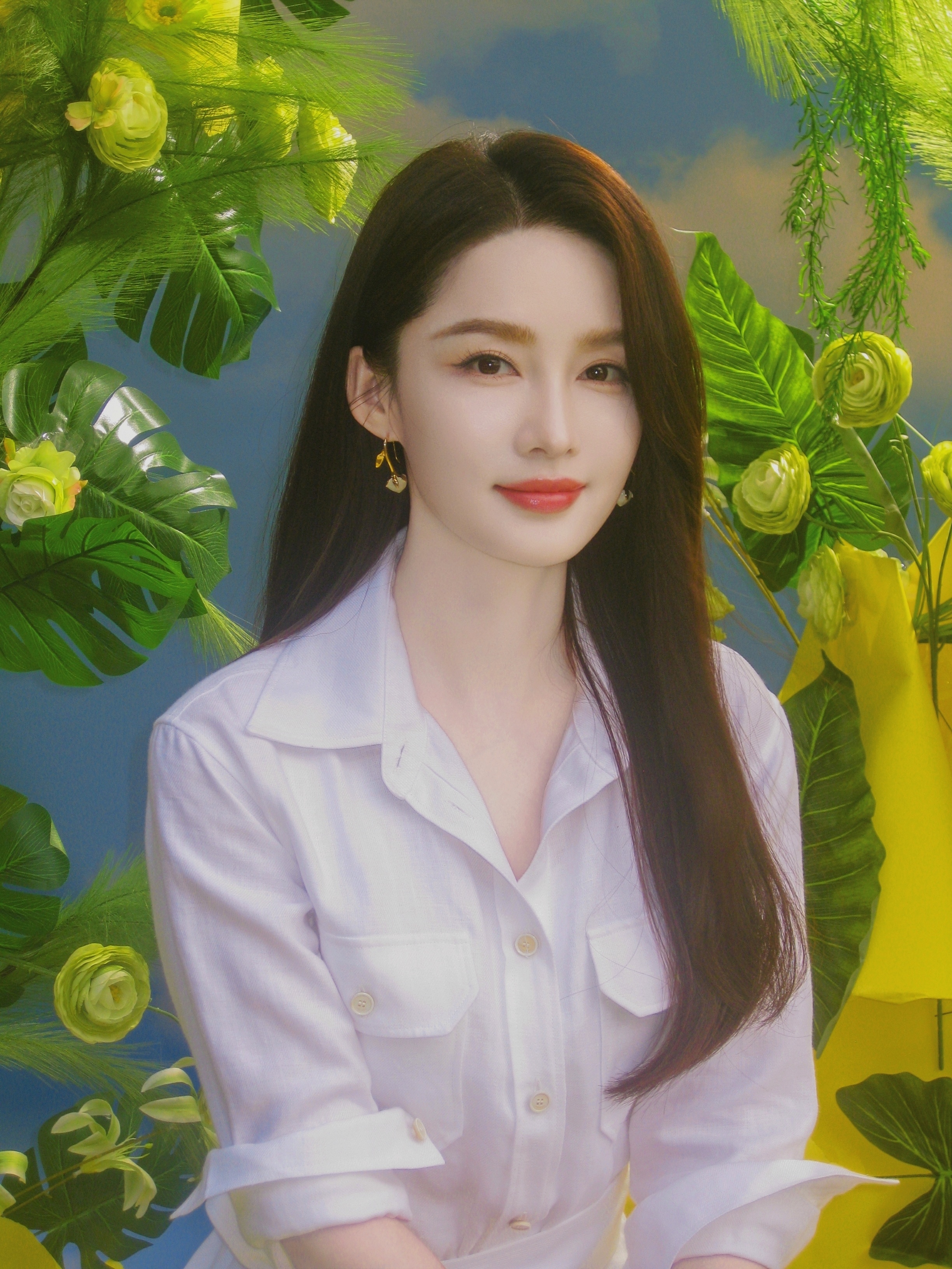 李沁 一袭纯净白裙,坠入春日绿意与明黄的温柔画卷里。