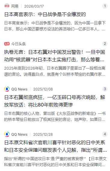 日本高官表示:中日战争是不会爆发的,因为中国一旦拿下日本,那么中国还要想方设法的养活我们一亿多日本人,如果按照这位日本高官说的去想,那么中日战争确实大概率没有发生的必要,可问题是,我们要的是日本的土地吗?所以这位日本高官大概率是在偷换概念。 麻烦看官老爷们右上角点击一下“关注”,既方便您进行讨论和分享,又能给您带来更多优质的内容,感谢您的支持! 咱们得先搞明白,中国的地缘战略核心诉求到底是什么?翻开任何一份官方文件,或者听听外交部历次的表态,答案都非常清晰:中国要的是自身的和平发展环境,要的是主权和领土完整不受侵犯,要的是周边地区的安全与稳定。中国从来没有表达过要“占领”或“吞并”日本本土的意图。2025年底,中方明确划出了三条底线:绝不允许日本右翼势力开历史倒车,绝不允许外部势力染指中国台湾地区,绝不允许日本军国主义死灰复燃。这三条底线,句句指向安全保障,字字关乎国家核心利益,跟所谓“要不要日本这块地”没有半毛钱关系。 所以,那位日本前高官所说的“中国一旦拿下日本”,这个前提本身就是无中生有。他把一个根本不存在的前提塞进来,然后在这个假前提上大谈“养不养得起一亿多人”,这不是偷换概念是什么?这种话术的高明之处在于,它用一个看似无法反驳的“经济成本论”,把舆论的注意力从真正的矛盾焦点上引开了。 那么,中日之间真正的矛盾焦点是什么?是历史恩怨的延续,是现实地缘政治的碰撞。看看2025年到2026年发生的事情,一切都摆在台面上。2025年底,日本防卫大臣小泉进次郎明确宣布,将在距离中国台湾仅110公里的与那国岛部署防空导弹部队,甚至计划后续部署射程覆盖中国大陆本土的中程弹道导弹。日本还在2025年度将国防预算一举推高到前所未有的水平,突破了战后长期遵循的“专守防卫”原则。与此同时,日本右翼势力中“一亿玉碎”的极端言论再次抬头,极右翼作家公然放话,声称如果中国对日本动武,剩下的一亿多日本人将发起足以让中国后悔的联合反击。中国国防部对此的回应毫不含糊:如果日本右翼势力继续走军国主义的老路,只会比八十年前败得更惨。这才是真实的火药味,跟什么“养不养得活一亿人”完全是两码事。 把话题拉回到那位前高官的“养活论”上。这种话术在日本国内其实有它的市场,背后藏着更深的政治算盘。日本近些年来经济长期低迷,人口老龄化严重,社会矛盾日益尖锐,再加上2025年高市早苗上台后政坛加速右转,渲染“中国威胁论”成了转移国内矛盾、为军事扩张铺路的惯用手段。把中国塑造成一个随时可能“吞并日本”的可怕邻居,再把这种“吞并”描绘成吃力不讨好的蠢事,既制造了恐惧感,又给自己的不作为找到了借口——你看,中国不会来打我们,不是因为我们安全,而是因为打我们不划算。这种逻辑,怎么看都像是在自欺欺人。 退一步讲,就算咱们按照那位前高官的荒谬逻辑来推演,中日之间的真实联系也根本不是他口中那种“谁吃掉谁”的零和游戏。翻开中日经贸的真实数据,答案一目了然。2024年,中日双边贸易额稳稳保持在3000亿美元以上的高位。中国是日本最大的贸易伙伴,日本对华出口占其出口总额的五分之一左右,大量日本制造业企业的原材料和零部件供应都离不开中国。更耐人寻味的是,在中日政治关系明显降温的背景下,经济联系却在逆向升温。澳大利亚智库洛伊研究所发布的报告显示,2025年前三季度,日本对华直接投资同比激增了55.5%。日本企业正在采取“立足中国,服务中国”的战略,越来越多地直接嵌入中国的供应链体系。这种深入骨髓的经济依存关系,才是中日关系真正的“压舱石”,远比任何关于“战争会不会爆发”的纸上谈兵要实在得多。 说到底,中日关系的真实基础,建立在对彼此不可或缺的经济需求之上,建立在维持东亚区域稳定的共同利益之上。钓鱼岛争端、台湾问题、日本右翼势力的军事扩张倾向,这些才是真正影响中日关系走向的核心变量,也是中国方面时刻保持警惕的根本原因。至于那位日本前高官口中的“养活论”,权当是一面镜子,照出了日本部分政客在复杂现实面前,选择用自欺欺人的话来安抚民心、转移视线的一种心态。可惜的是,地缘政治的牌桌上,从来没有人会因为你家的饭不好吃就放过你。中日关系的未来,取决于双方在安全边界、战略平衡和政治影响力上的博弈与妥协,而不是一句轻飘飘的“你养不起我”就能打发的。