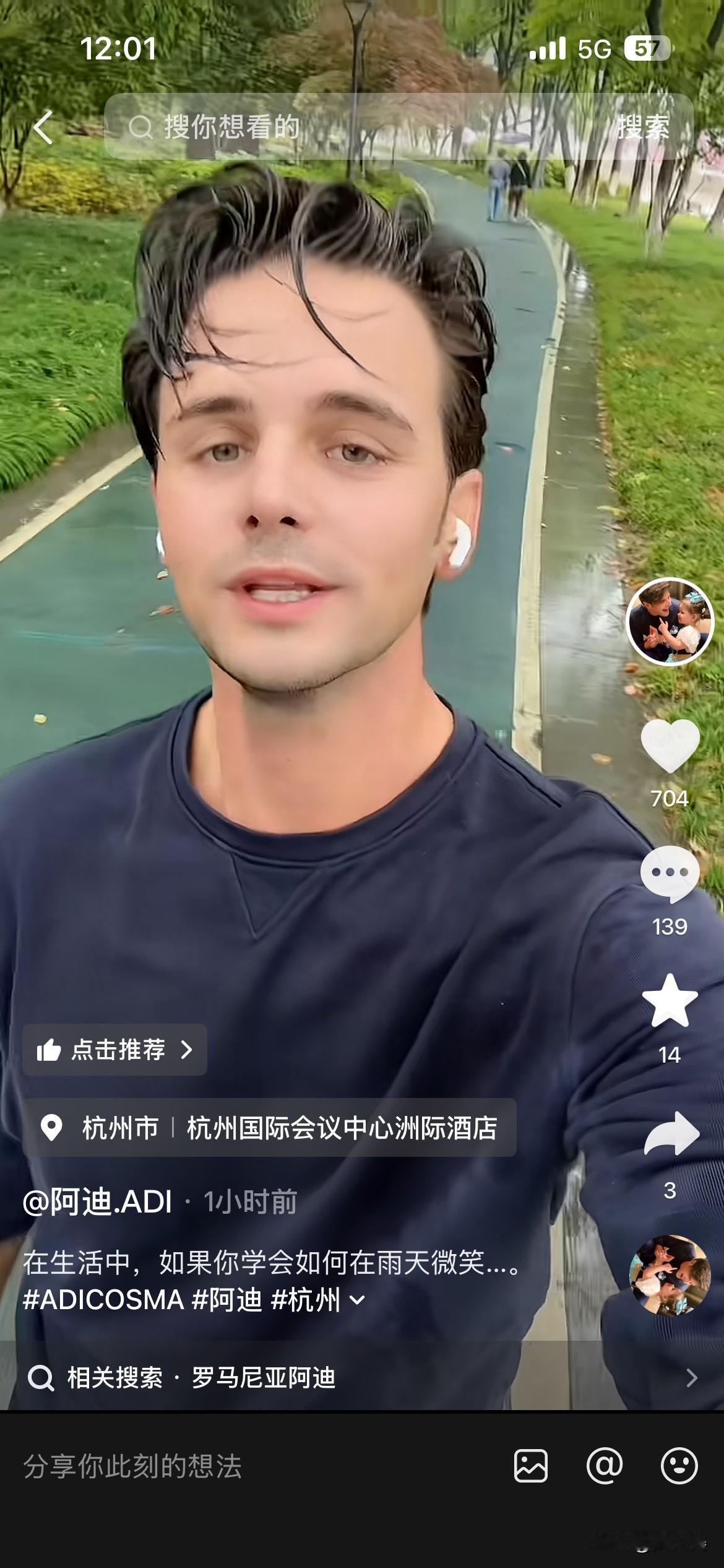 20260422 看到阿迪被雨浇的样子,我突然想起了《拉兹之歌》。 下雨了不可怕,雨过天不晴才让人难受。 拘泥于眼前,难受的就是未来。向前看,为未来打算才是成年人应该有的态度。此时的阿迪只有做好自己,才是对粉丝最好的报答。 阿迪人设 阿迪金句 阿迪旅行