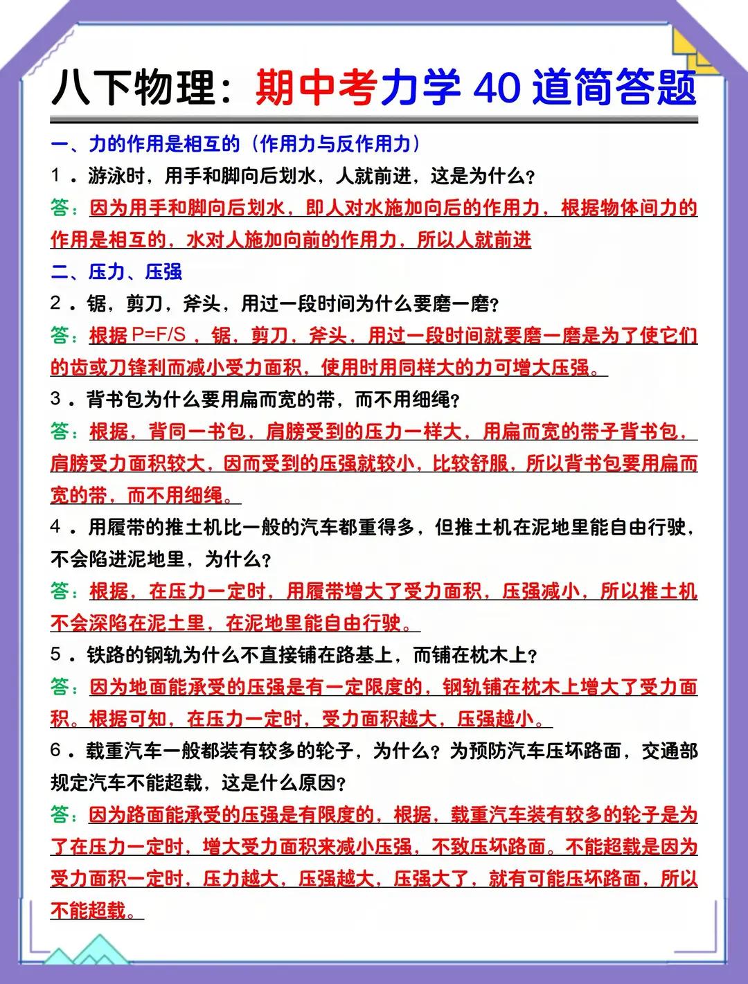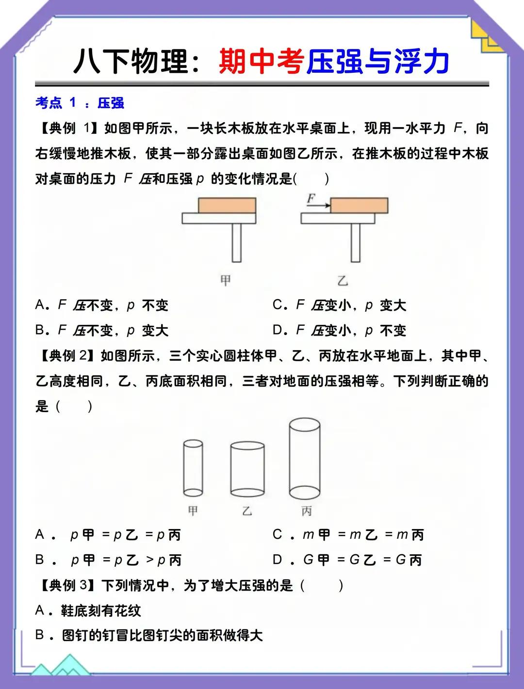 八下物理基础概念专项练习填空