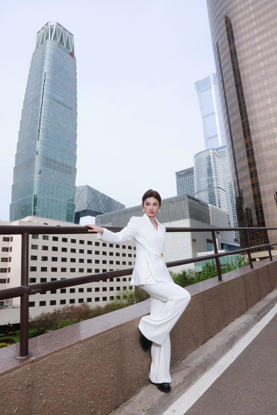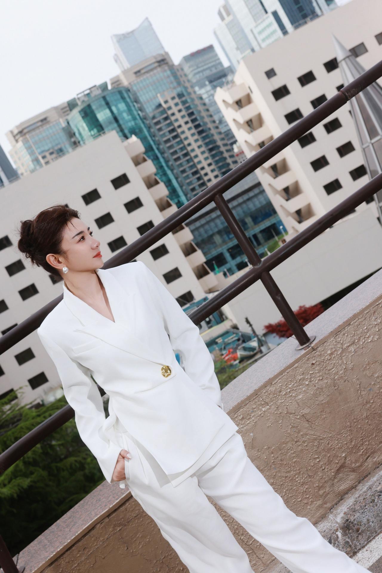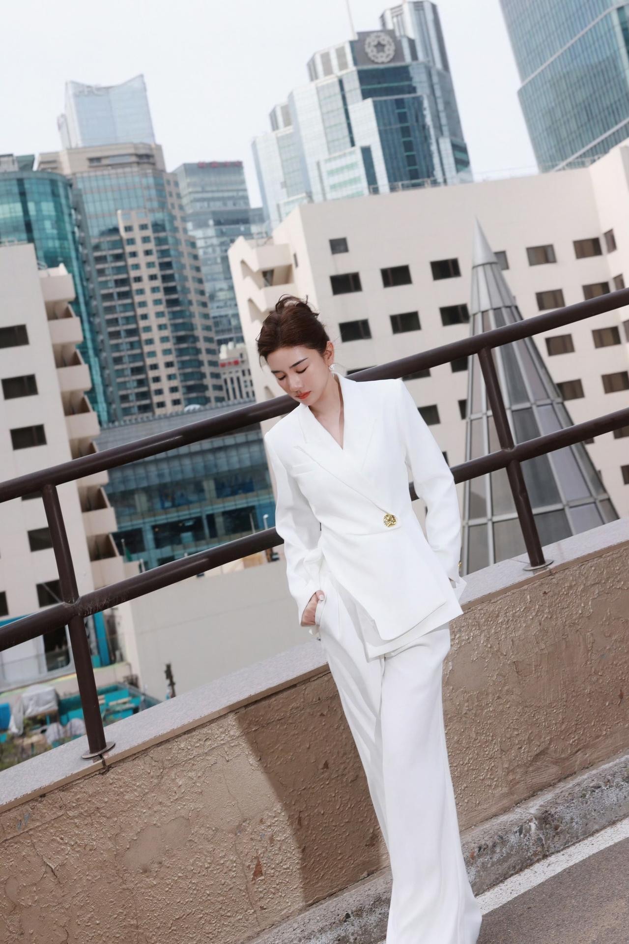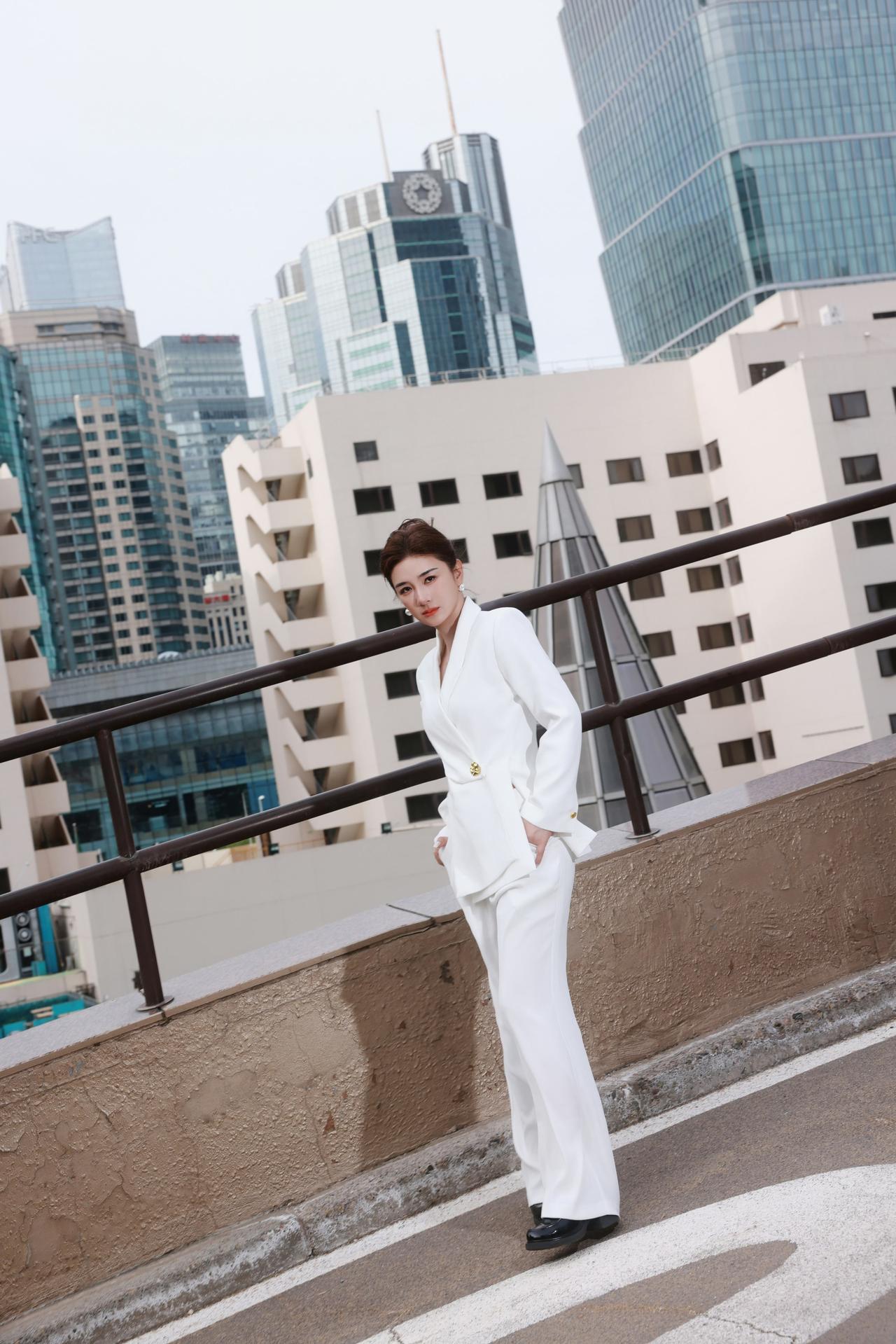 一身利落白西装,踩响都市节奏。在城市的天际线下,把温柔藏进锋芒里,自带松弛又飒爽的气场。