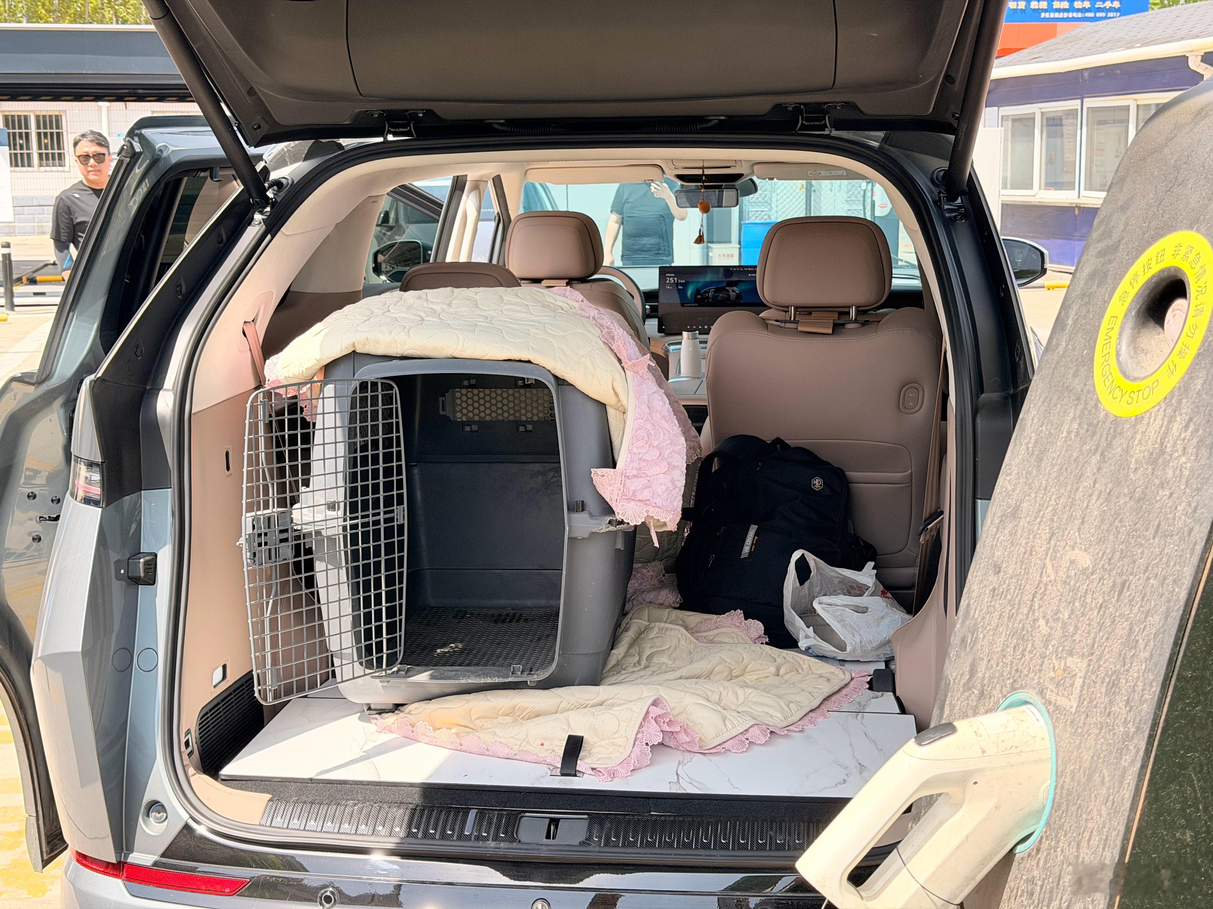 感觉后备箱这宠物箱子有点小了,X9后备箱明显还能放大得多的,主要感觉狗在里面会憋屈