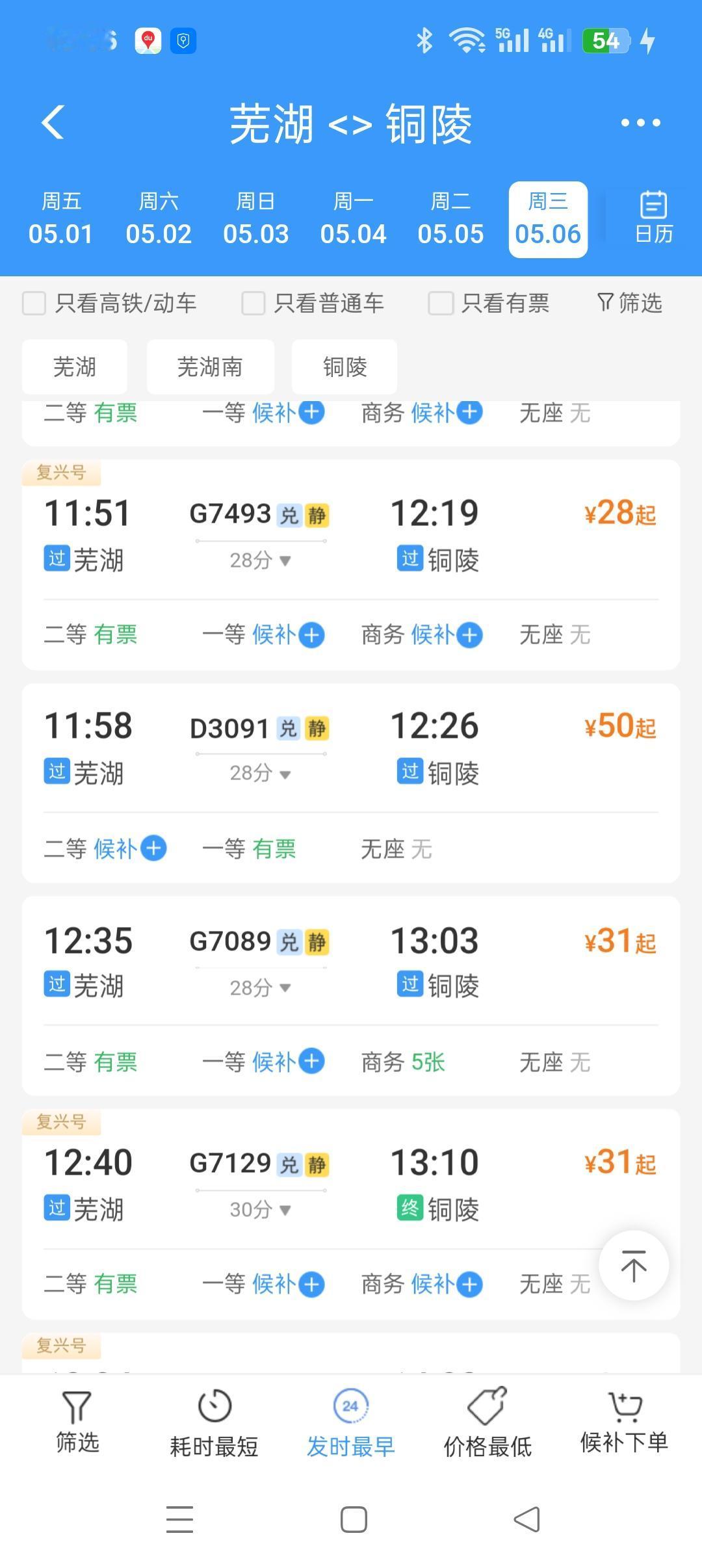 在我们的印象中,一般情况下,在线路相同 都是动车票比普通火车票贵,而高铁票比动车票贵,而这趟车D3091的车票竟然出现比其他动车和高铁的车票都贵,更离奇的只是贵在某一小段,即芜湖到安庆这段,如果芜湖再上去一站马鞍山的票价就恢复正常了。