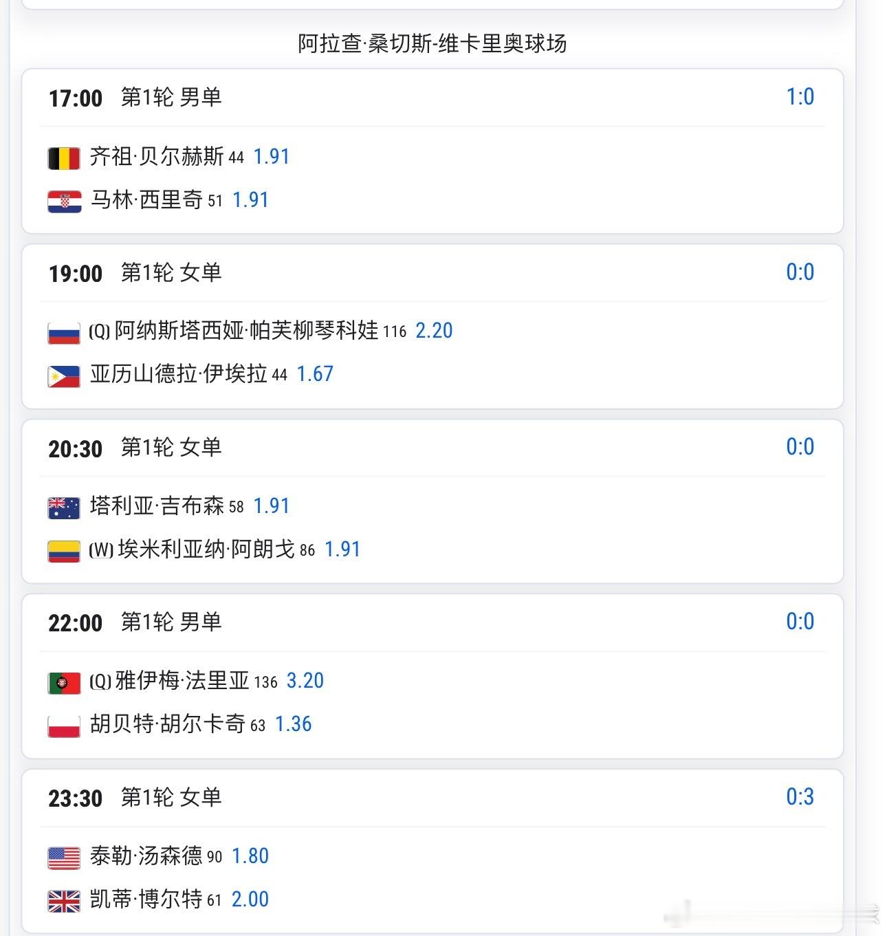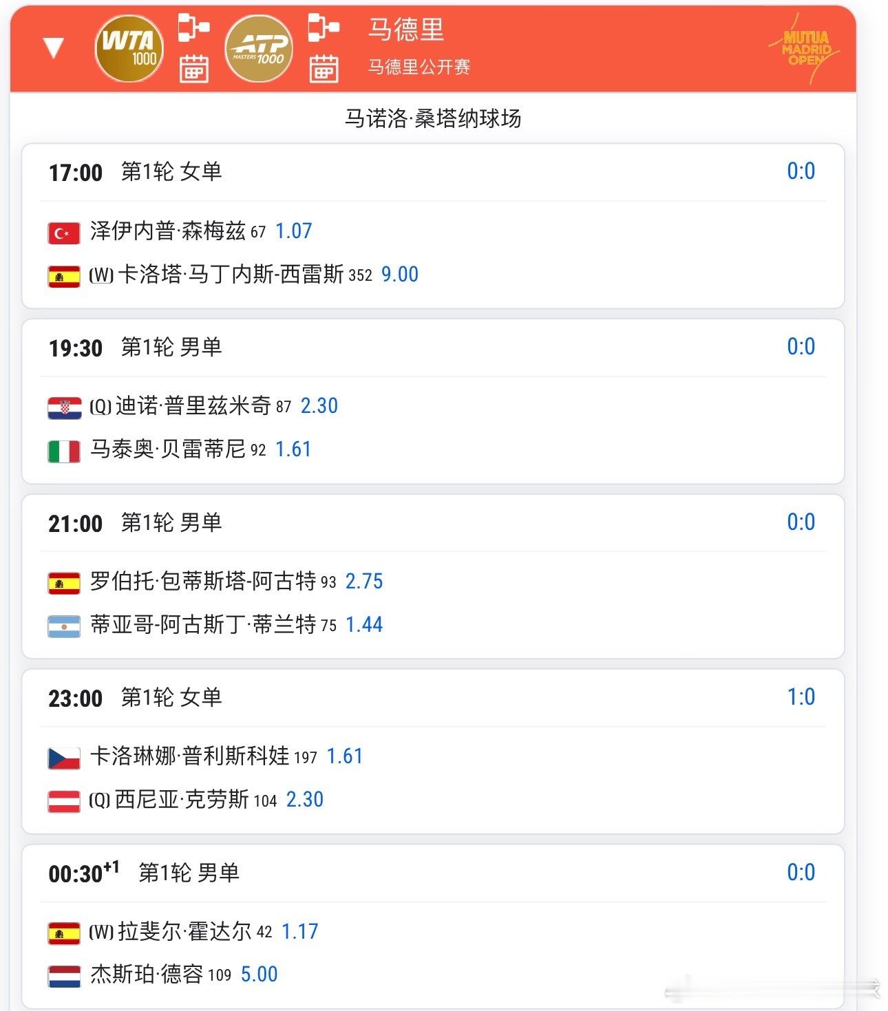 今日马德里赛程 男女单首轮,张之臻🇨🇳,张帅🇨🇳出战