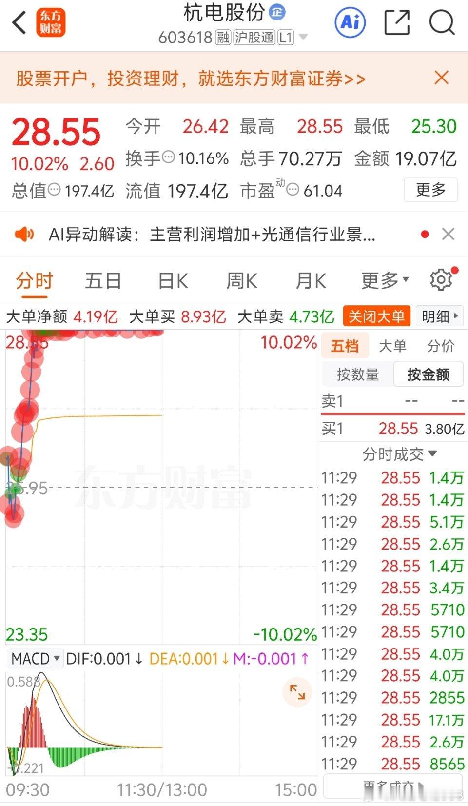 杭电股份,开盘即涨停,今天直接躺赢!