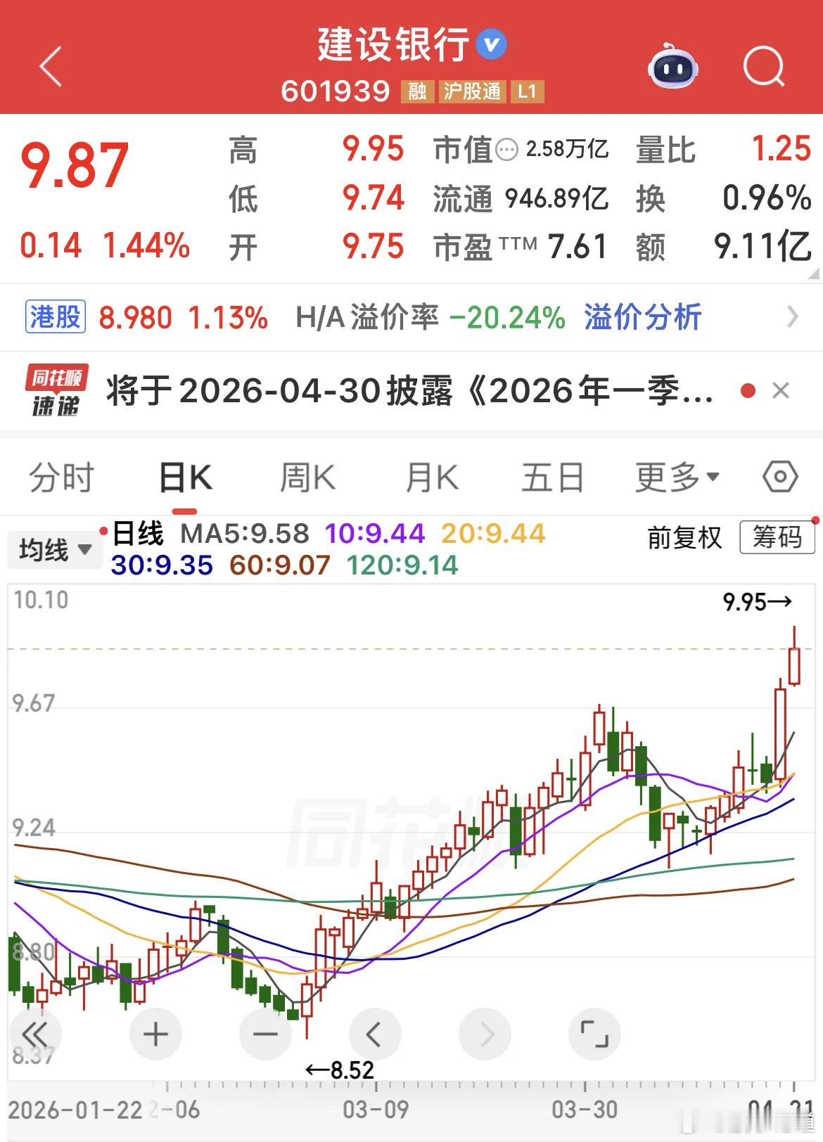 建设银行今日股价创历史新高!银行板块行情开始了吗?老登们春天来了吗?实时热搜创作