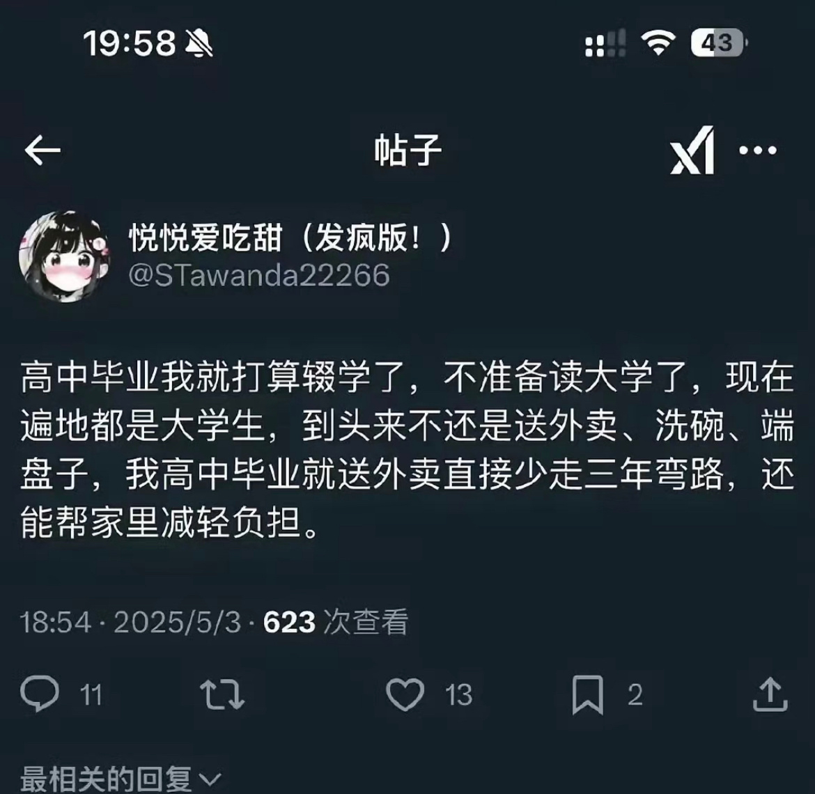 Little丶白 1 2026-04-22 14:58 如果你没有其他特长,不学习也就只能从事体力劳动工作,但如果你学习了,那么日后除了体力劳动,还可以选择从事技术类工作,其实没什么,只是多了个选择的方向,未来的发展也有可能会不同。