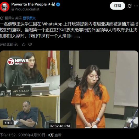 美国天天在全世界喊着言论自由,转头就因为一句话,把一个大学生逼到绝境!就因为在群里随口调侃了一句“小心内塔尼亚胡用炸弹炸你们”,没有造谣,没有煽动,纯粹是随口一说,结果这位学生不仅毕不了业,还有可能要蹲几年大牢,一辈子都要背着犯罪的标签,这就是美国吹上天的言论自由?简直荒唐到离谱! 没人会想到,一句无关紧要的调侃,能酿成这么大的祸。这位美国大学生,本来还有大好前程,顺利毕业就能找份好工作,过普通人的生活,可就因为这一句话,学业全毁,人生轨迹被彻底改写。 更讽刺的是,美国政客天天在电视上标榜,自己是最自由的国家,每个人都有说话的权利,可到了实际情况里,连一句调侃都容不下,下手比谁都狠。 其实不止这一件事,美国的言论自由,从来都是分人的,是有条件的。之前有个美国博主,只是在社交平台上批评美国政府援助以色列的政策,说不该一味偏袒,结果账号直接被封禁,还被约谈,甚至收到了死亡“威胁”。 还有当年伊拉克战争期间,美国有记者质疑战争的合理性,曝光了美军在伊拉克的暴行,结果被开除,甚至被诬陷有通敌嫌疑,一辈子都无法再从事新闻行业。 反观美国一直指责的一些国家,反而没有这么极端的“文字狱”。就拿欧洲一些国家来说,民众可以公开批评政府的政策,哪怕言辞尖锐,也不会被抓去坐牢、毁掉学业。 而美国,嘴上喊着言论自由,背地里却在疯狂打压不同声音,只要你说的话不符合他们的利益,不符合他们的立场,就会被无情打压,管你是不是随口调侃,管你是不是无辜的。 我个人立场很中立,不刻意抹黑美国,也不盲目吹捧任何国家。我只是觉得,言论自由不该是一句空话,更不该是双重标准。美国标榜的自由,从来都不是真正的自由,而是符合他们利益的自由,一旦触及到他们的利益,哪怕是一句无关痛痒的调侃,也会被狠狠“制裁”。 那个大学生的悲剧,不是个例,是美式虚伪的最好证明。一句话,毁掉一个人的一生,这样的国家,根本没资格谈言论自由。 我不否认每个国家都有自己的规则,但规则不该是用来打压无辜者的,不该是用来掩盖虚伪的。希望大家能看清美式言论自由的真面目,别再被那些空洞的口号所欺骗。
