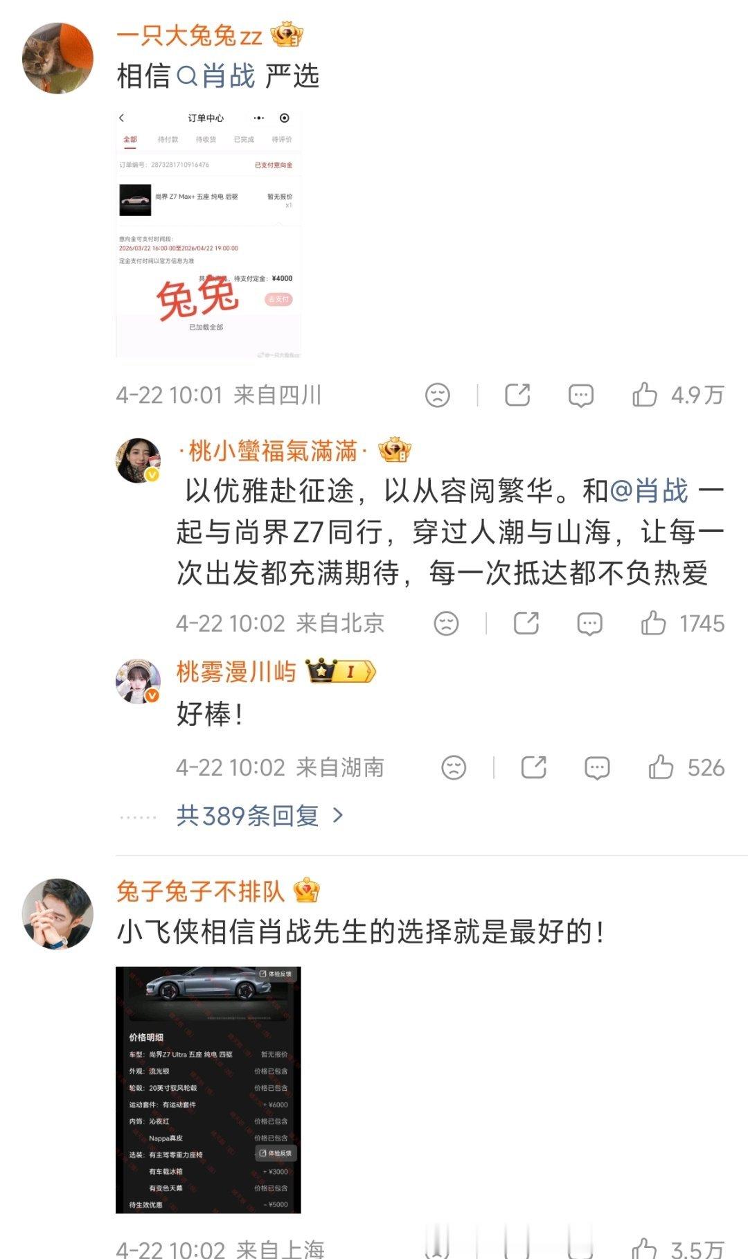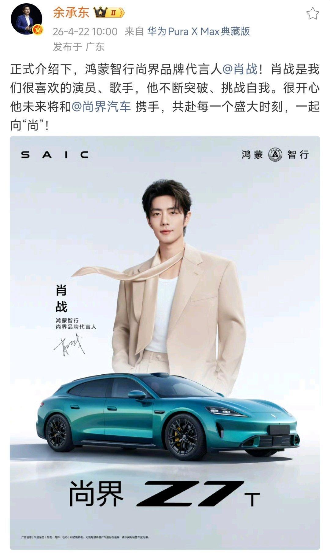 余承东官宣肖战代言 余总评论区全是肖战粉丝在晒单,年轻又有购买力,这不就是Z7和Z7T产品定位的最佳目标用户吗?