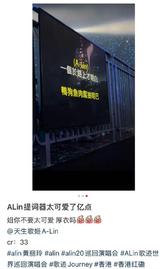 ALin提词器都是谐音梗ALin香港演唱会听歌还是看提词器太会抢戏啦吧!这个提词