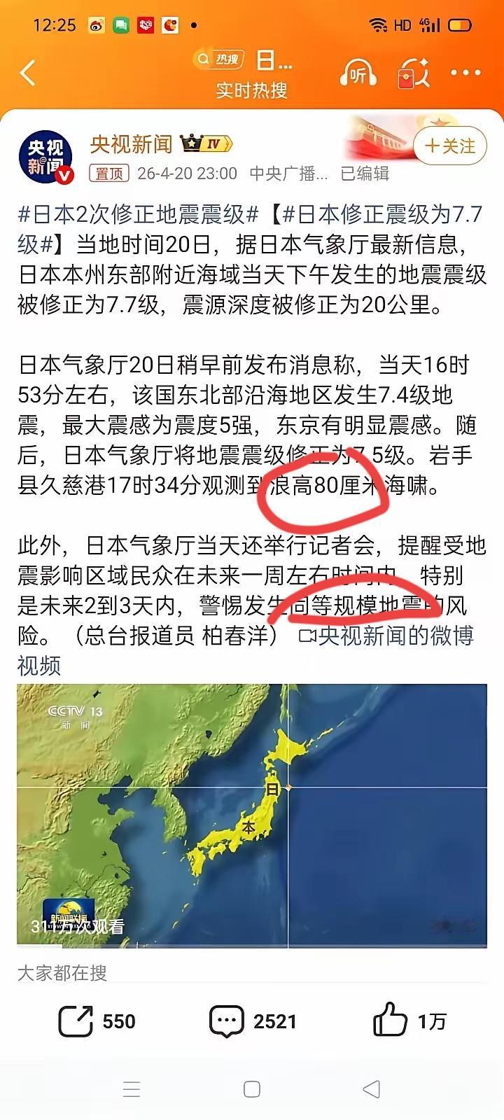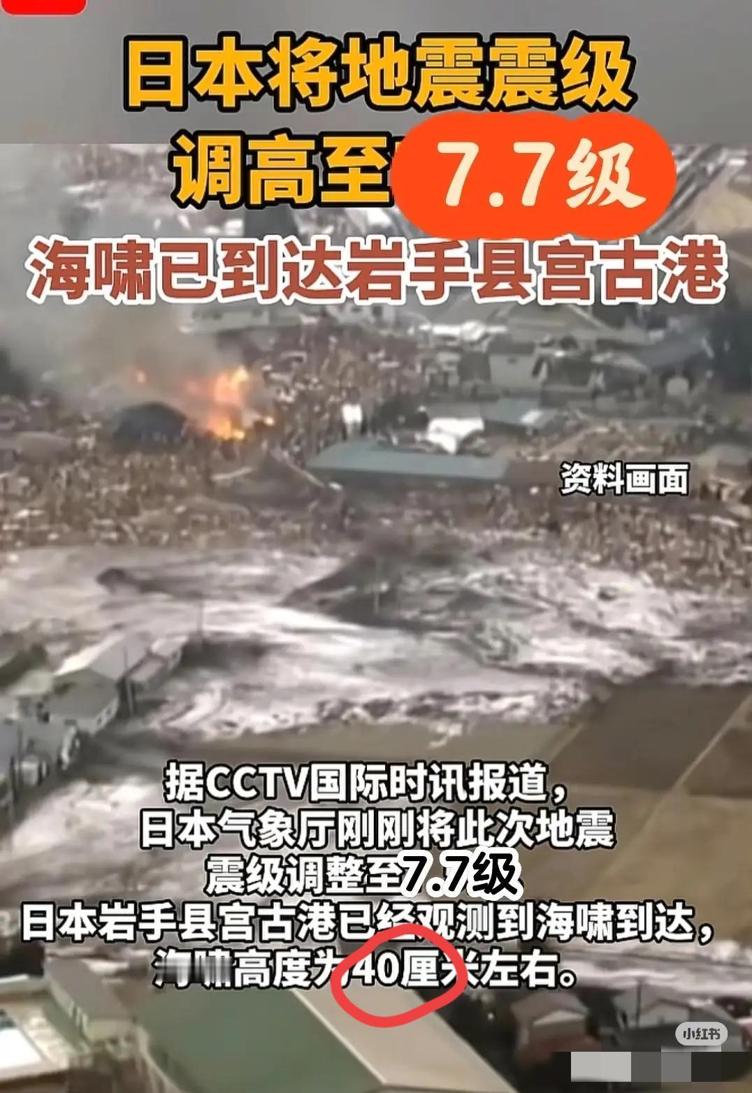 日本7.7级地震,海啸40厘米,80厘米?40厘米,大水面随便风吹吹,顶多算个大浪而已。 未来两三天内有发生同等规模的地震风险,若真有,我要看视频,学做千纸鹤了[呲牙]