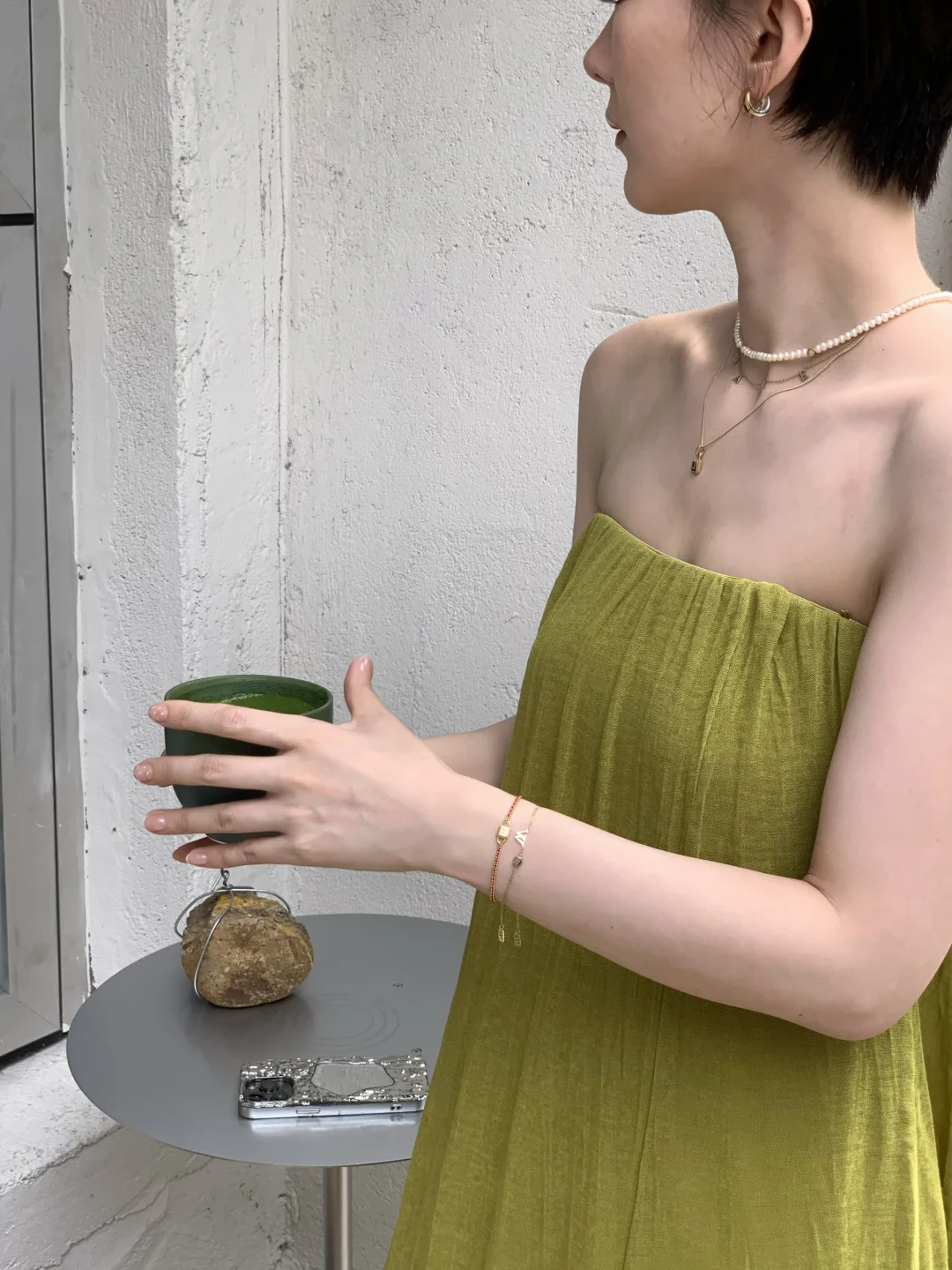 穿点亮色出门心情跟着好 一直以来的首饰风格其实没怎么换 简约一点反而更耐看 定制的小心机让整体穿搭简约但不简单 字母项链定制的BRAVE,落在锁骨很闪耀 同样可以定制的锁头项链和2条手链 相互叠戴 让整体穿搭更精致又层次感 不用刻意搭 随便戴戴就挺好看的
