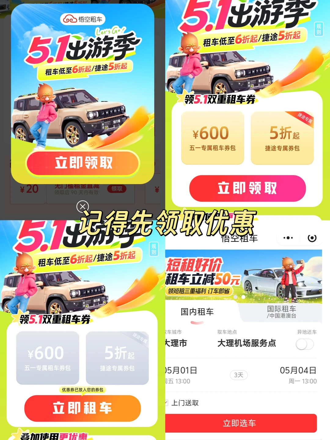在大理,一定要自驾,感受海风吹拂,随走随停的乐趣。这次出行我们选择的是租车,看网上之前有很多避坑指南,这次抱着试一试的心态打开悟空租车。