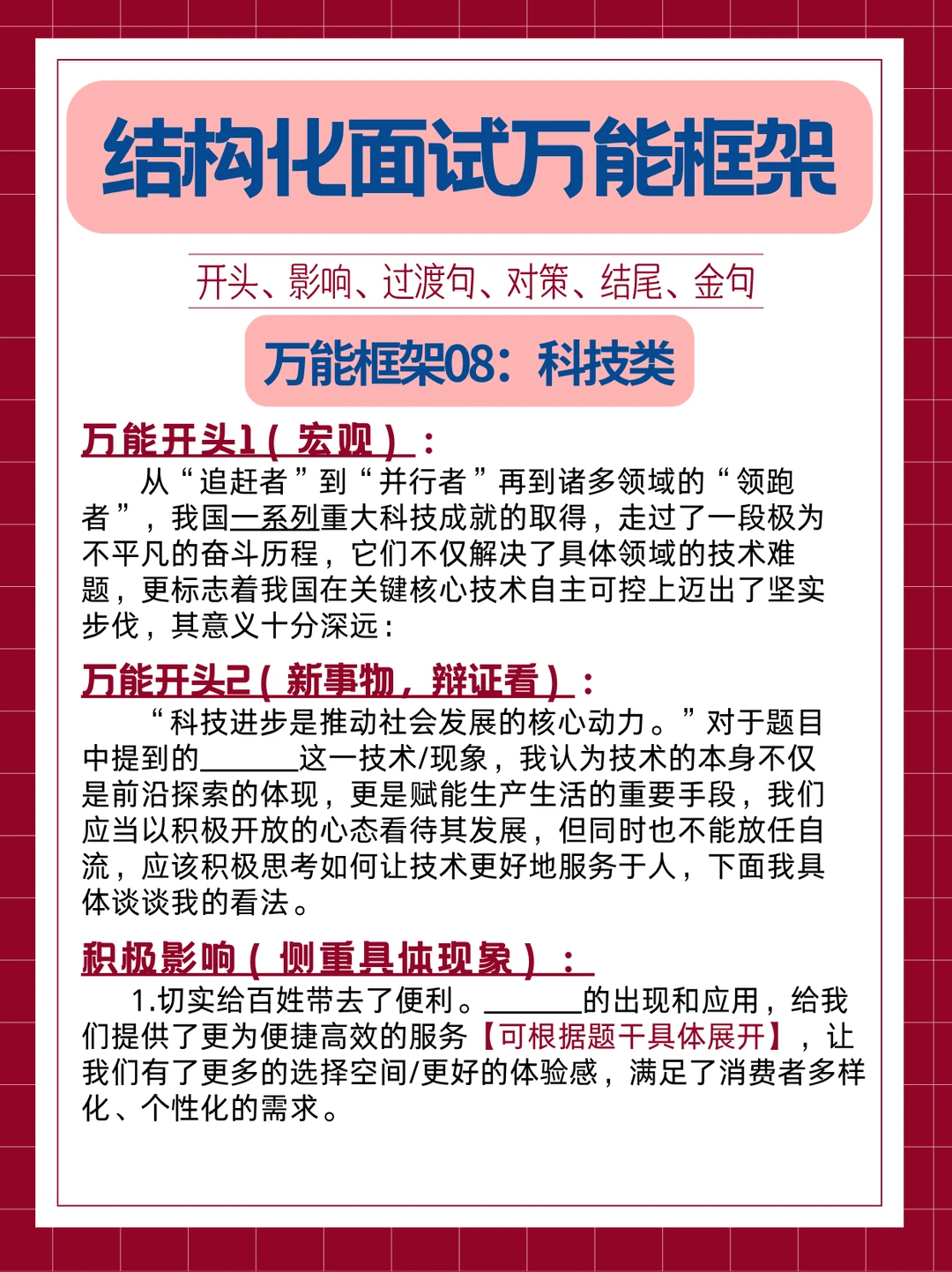 蕞新版面试综合分析模板,深度迭代,更贴切今年面试考情的内容 新增各个类别的思维导图梳理:开头、影响、过渡句、对策、结尾、金句...等等一目了然,提升积累效率 到现在还没话说,依然磕磕巴巴作答的,一定试一下这个综合分析万能框架 省考面试 公考面试 结构化面试 公务员面试 事业编面试 事业单位面试 结构化面试万能模板 公考面试热点 综合分析 结构化高分技巧