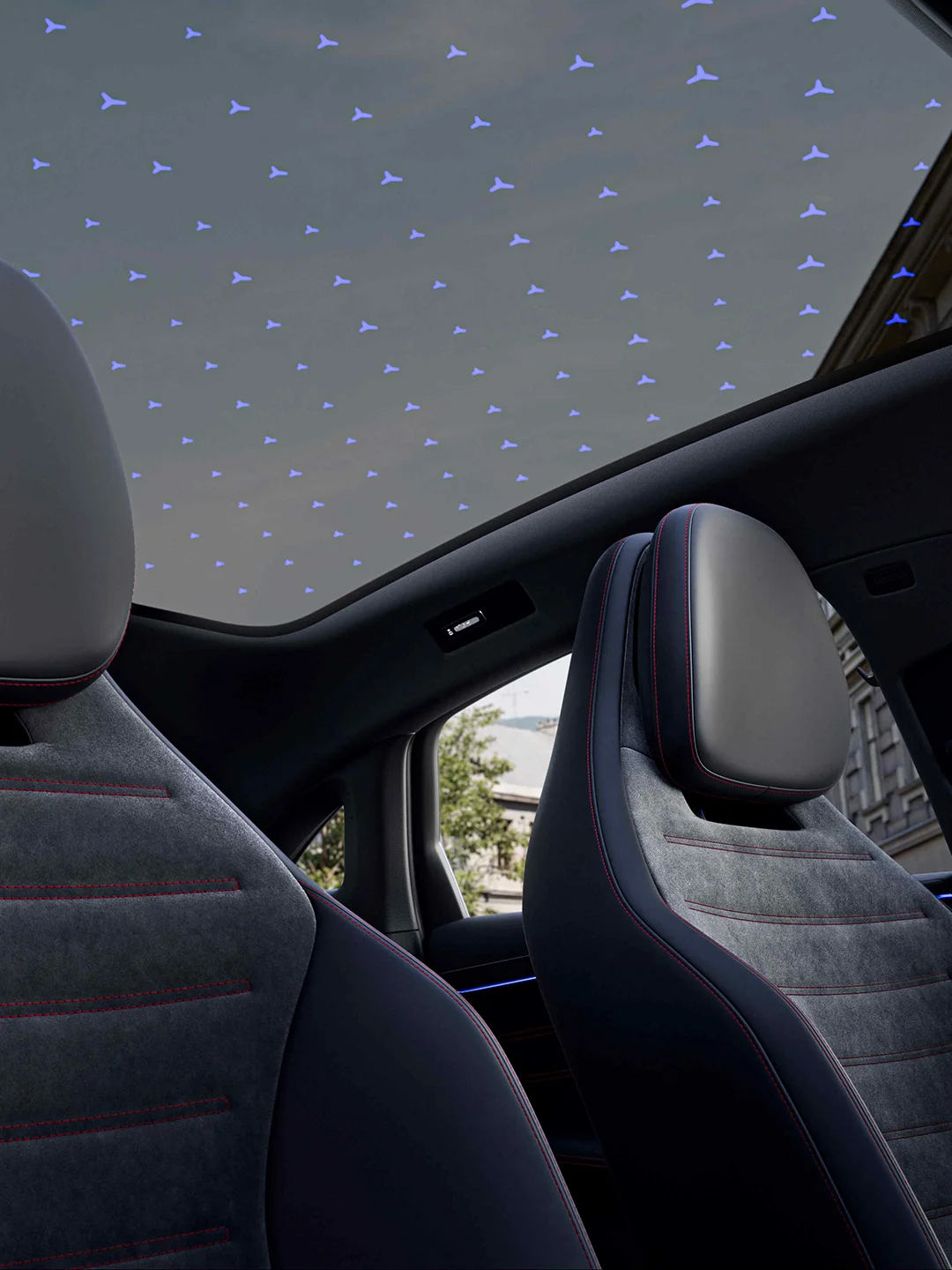 🔹多区智控星徽全景式天幕,点亮162颗星徽,将天幕化身为车内的专属“星空”,可被划分为9个独立的分区,让前后排乘客能自由调节车内光线