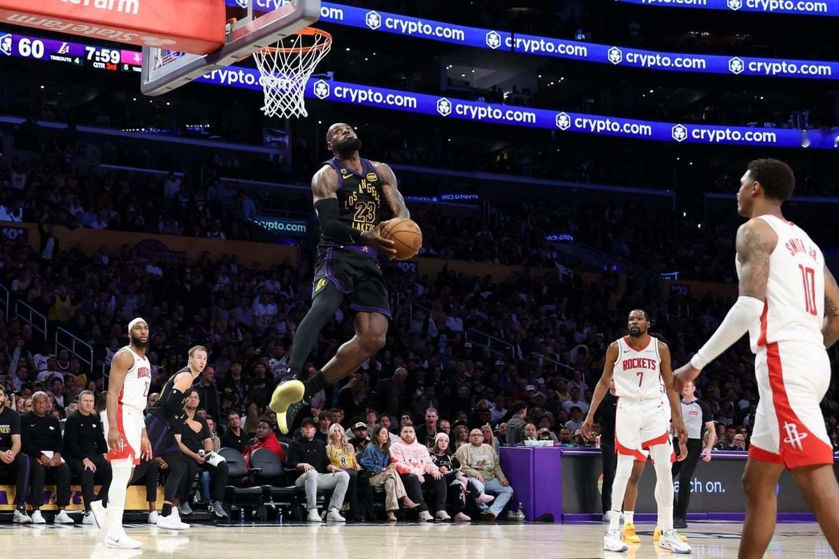 肯纳德射术惊人,但得分还是得靠战术,第一场是开局连续执行布置打对手没准备。火箭今天对此有所防范,好,那我就出手更难的机会,第二节那一波其实还是在打对手没准备——无非是出手更难,对手想不到他要出手的球。但无球点终究是无球点啊,两场球他的得分都是一波一波的,说白了你射术牛逼我比之前更重视就好了,大不了我不协防湖人持球人了,你又不是库里,还能持球无限开发吗?那么打到最后,还是要看主攻手的持球表现。詹姆斯今天的体能比第一场好,尽力维持了主攻延续性,但攻的非常分散,都是一小段时间攻一两下的样子,如果你不包夹,他真能从头打到尾?包夹是最不能接受的防法。而且我说个恐怖故事,湖人配角可能整体水平不行,但是八村垒斯玛特肯纳德的外线,真比kd的队友投篮强。。。。。。41岁詹姆斯折叠背扣火箭vs湖人 湖人2比0火箭