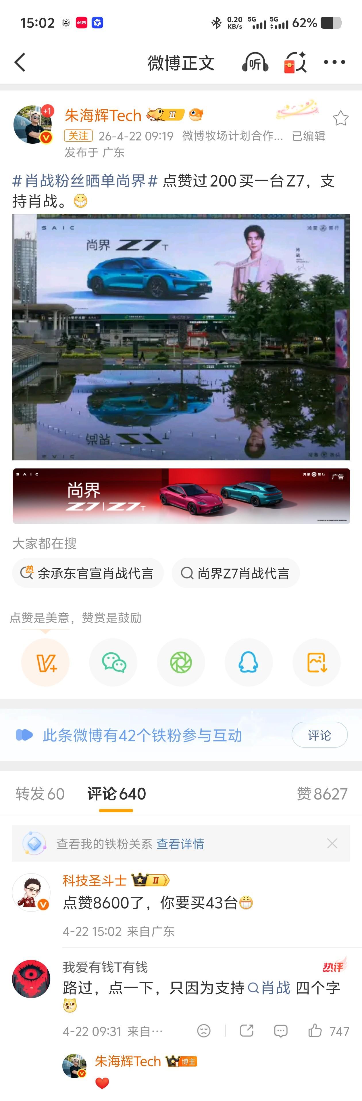 肖战粉丝晒单尚界肖战这影响力和带货能力,太猛了,所以他贵啊,但是的确效果好啊,不得不服。我北京的老同事没指标,不然估计也要买一台