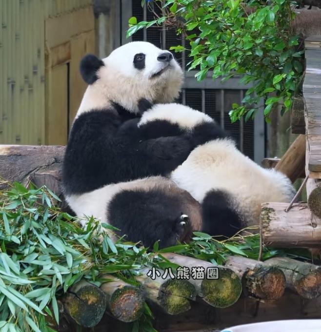 良月在木架上坐着吃饭,小月亮奶瘾犯了,来找妈妈要奶喝,良月饭也不吃了,一把把小月亮搂到怀里,这抱孩子的姿势太人里人气了,好熟练好温暖啊!小月亮趴在妈妈的怀里开心地喝着奶, 良月双手拥抱着小月亮,对着小月亮可爱的小脸庞亲了又亲,这个画面真温馨,良月对小月亮的爱显而易见,母女时刻真温暖![赞][比心]良月 小月亮 熊猫良月 熊猫小月亮 熊猫 大熊猫 国宝 重庆动物园 (cr:@小八熊猫圈)