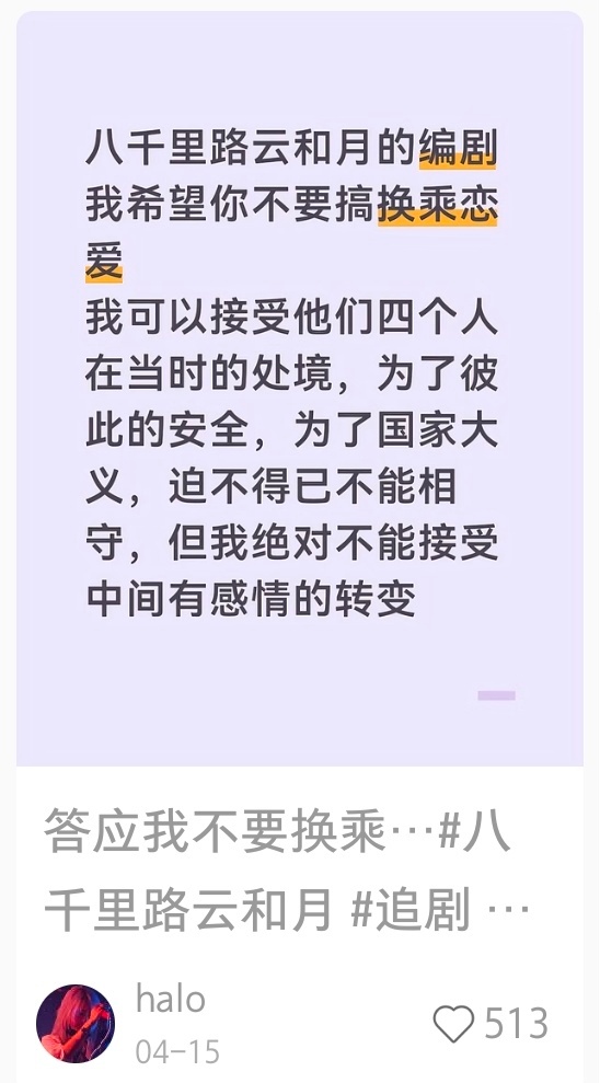 坏起来了,八千里路云和月的观众接受不了剧情似乎要往“换乘恋爱”的方向发展了,可怕的是原著真是这么写的大体就是厨子和将军“遗孀”(其实将军没死)相互扶持,而将军在战场上又遇到了厨子的未婚妻。