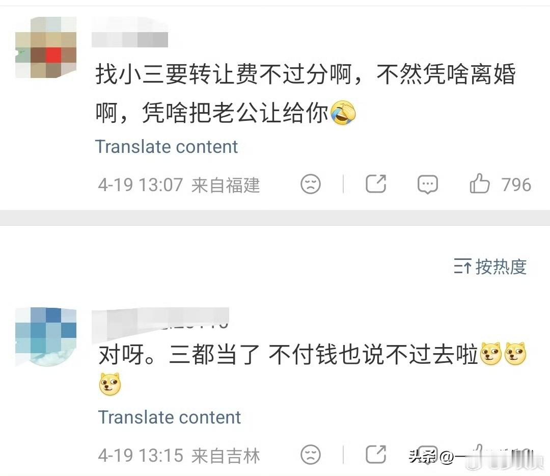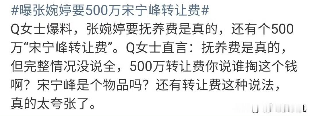 我真是被气笑了,张婉婷居然向宋宁峰索要500万“转让费”,说是把他“转让”给“小三”,不然就不同意离婚?不是,婚姻都走到这一步了,还有什么可转让的?这难道不算在哄抬“猪价”吗?