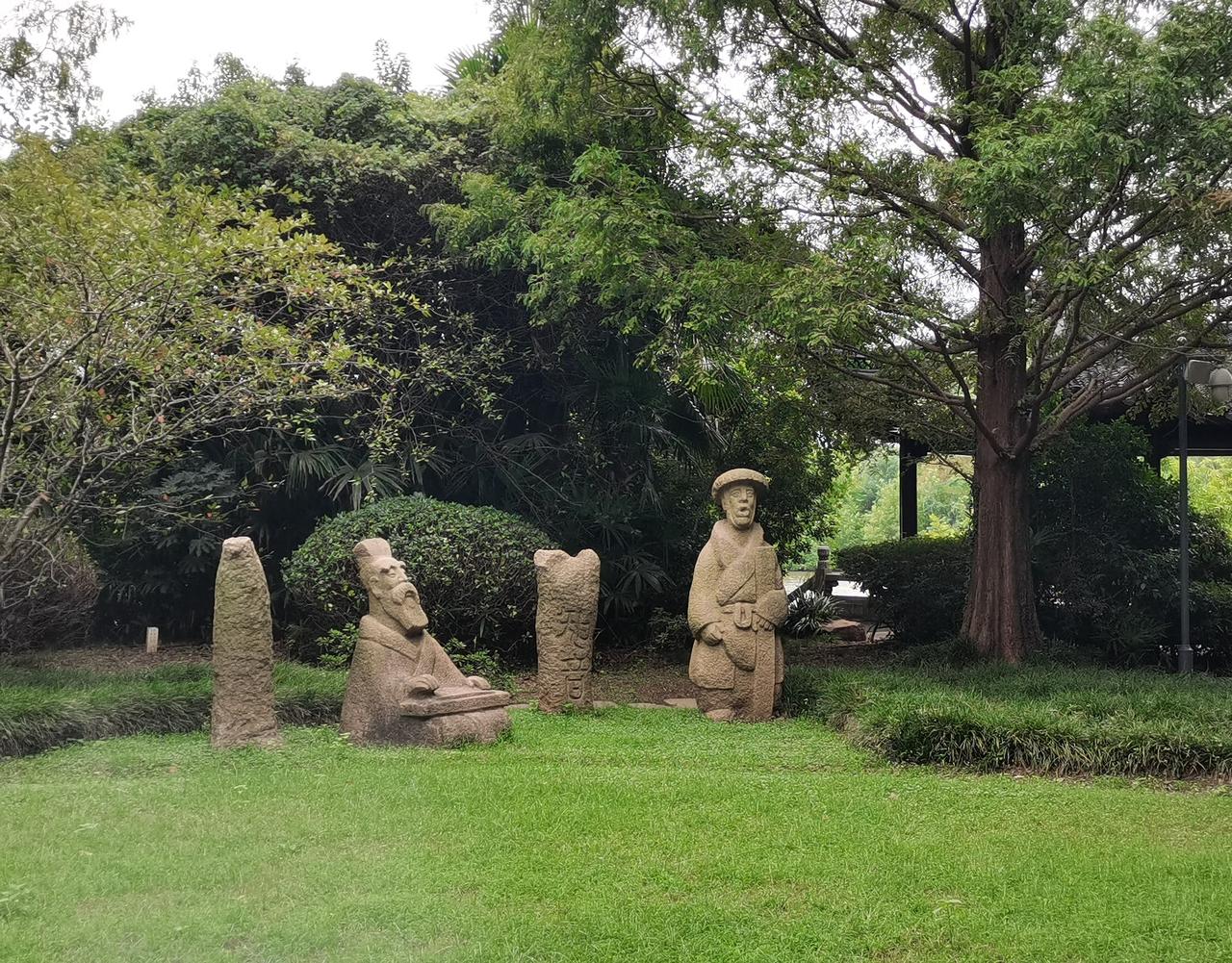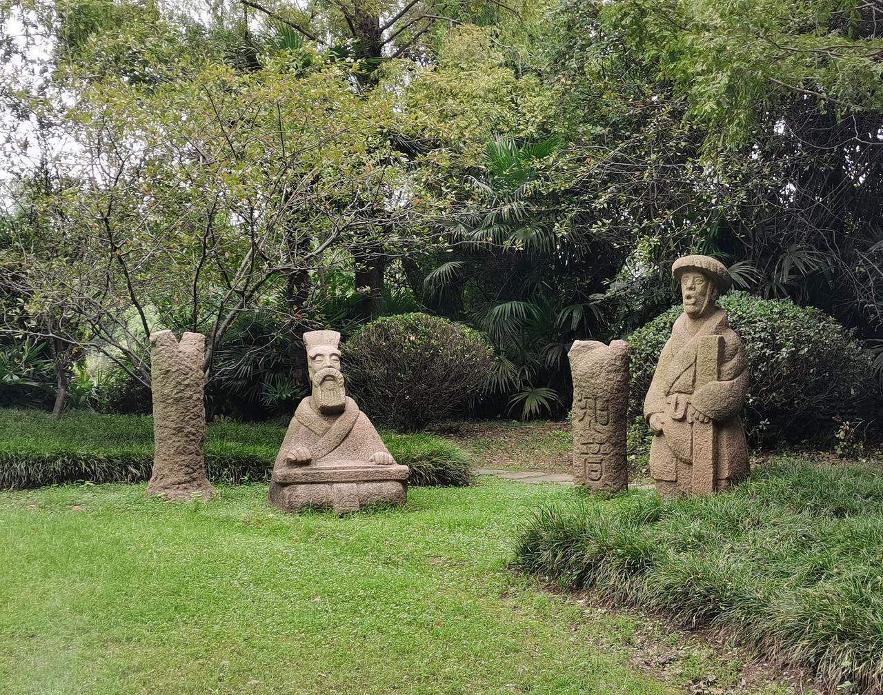 雕塑《知音》立于采石矶国家 AAAAA 级旅游景区 伯牙台 伯牙台一名源自春秋时期俞伯牙和钟子期的故事。相传钟子期的家乡在马鞍山"钟村",高山流水遇知音的故事就发生于此。这组现代雕塑作品《知音》,由中国美院教授渠晨明所作。再现了伯牙抚琴、子期倾听的场景。