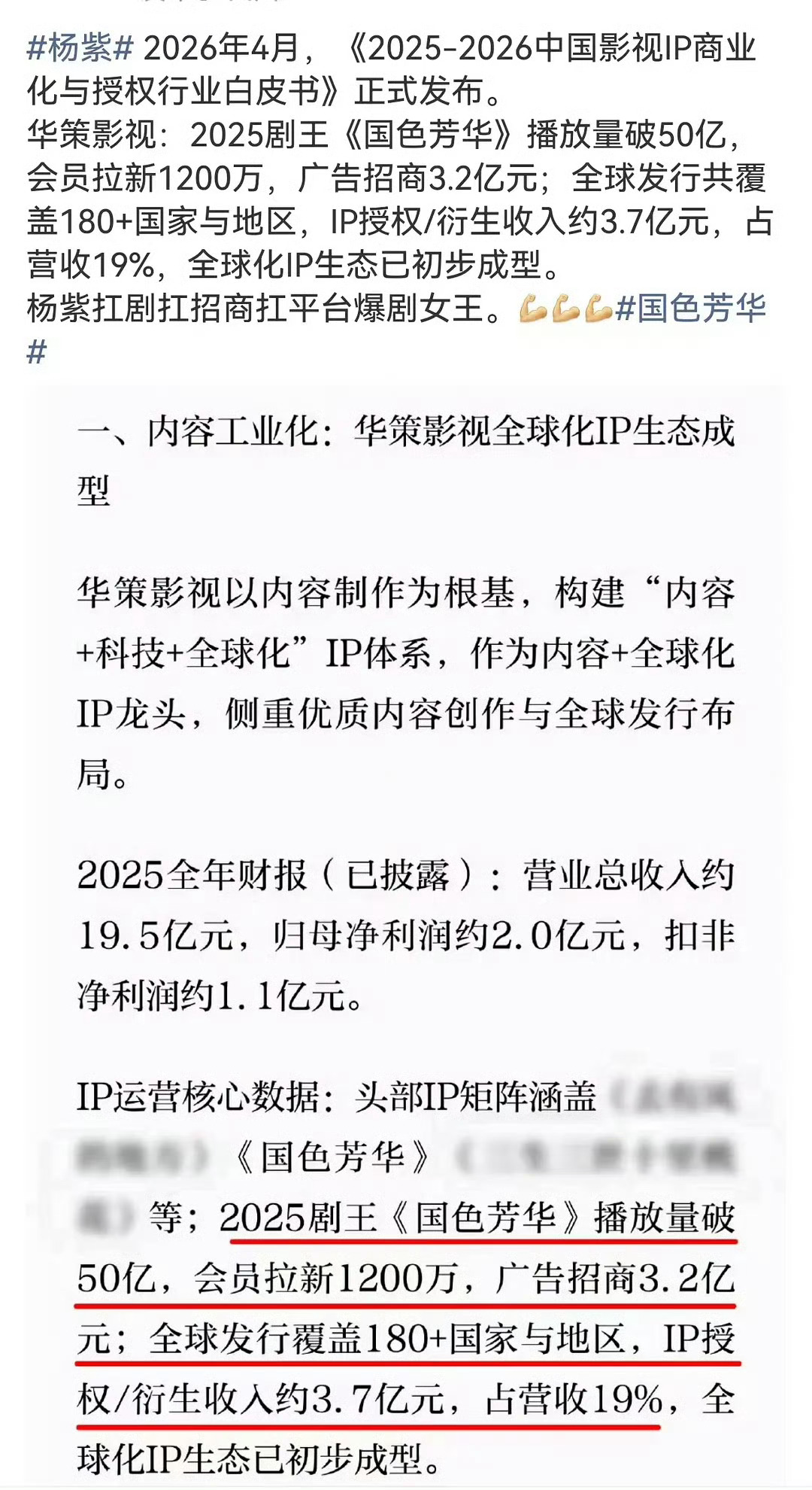 华策给杨紫第一部剧《亲爱的热爱的》就现象级大爆,给的《承欢记》腾讯热度现代剧历史第三,给的《国色芳华》芒果史冠。华策是影视寒冬发大财的高人芒果也是。杨紫平时也没在🫘上做铺天盖地的营销,还有人说她不会营业,但看她剧的就是人多。