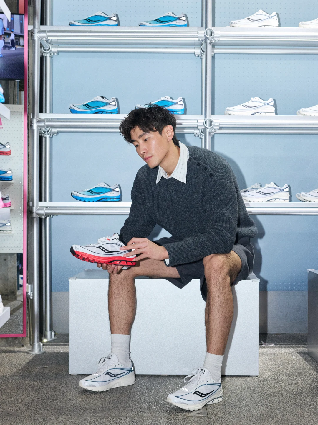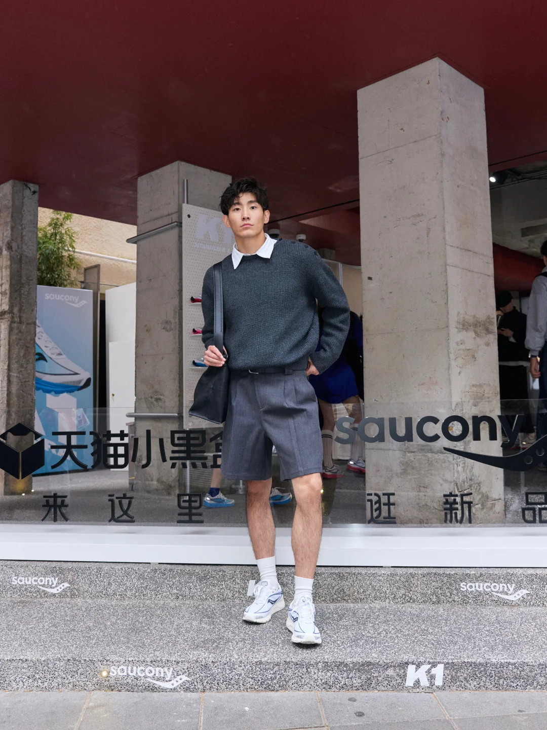 最近连轴转,出门透透气 漫无目的地去安福路附近逛了逛。 路过索康尼的线下快闪, 被银色的外立面吸引, 有一种清冷克制的秩序感, 忍不住进去逛了逛。 现场试穿了索康尼K1, 脚感很扎实,穿上却很轻盈。 极简的配色和设计深得我心! 简单的卫衣短裤, 和它搭配起来也能有高级感, 通勤、运动、看展 都能轻松穿出质感。 逛完快闪, 感觉整个人的能量都得到了补充! 去走,去呼吸 把松弛还给自己。