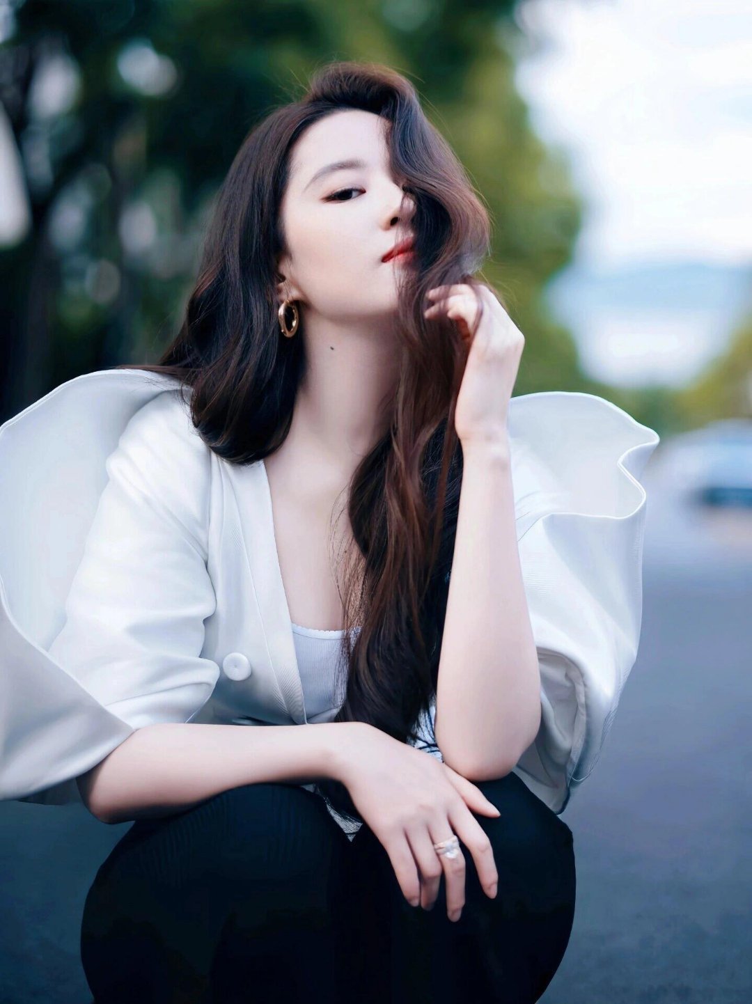 刘亦菲甜酷于一身,灵动双眸含甜意,飒爽姿态显酷劲