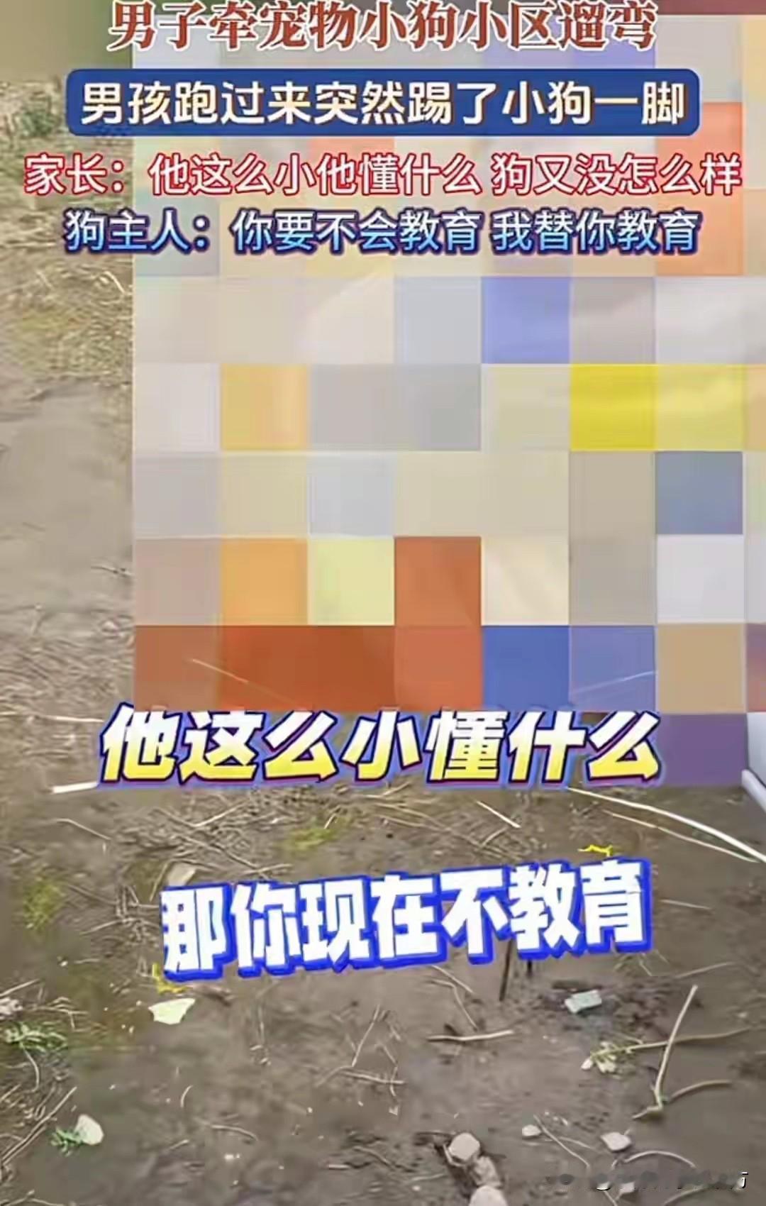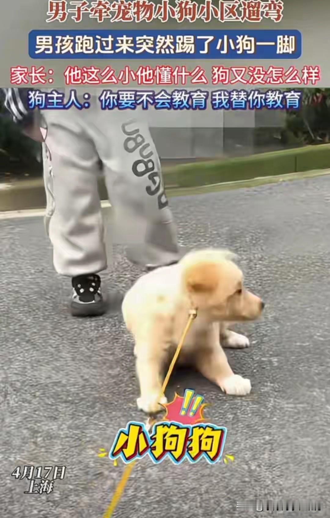 “你要不会教育他,我替你教育!”近日,上海一男子在小区内牵绳遛狗,狗却被小孩踢了一脚,而小孩家长非但没有道歉,而且态度嚣张的说:“他这么小懂什么?”面对家长这样的态度,男子表示:你要不会教育他,我替你教育! 事发当天,一名男子按照小区规定,牵着自己的宠物狗在小区里正常遛弯,全程牵紧狗绳,小狗也安安静静地跟着主人走路,没有乱跑、乱叫,更没有主动靠近路人。 本来是再平常不过的一幕,可意外突然发生,一个小男孩不知道从哪里跑过来,二话不说,对着小狗的肚子就狠狠踢了一脚。 狗主人当时又心疼又生气,自己的狗狗没招惹任何人,却被孩子无端伤害,他第一时间没有发火,也没有指责孩子,而是耐心地蹲下来,询问小男孩为什么要踢小狗,只是希望孩子能意识到自己的错误,简单道个歉,也想让家长好好教育一下孩子,让孩子明白不能随意伤害小动物。 可接下来家长的操作,彻底让人气炸,孩子的妈妈立刻冲上前,像护犊子一样把孩子挡在身后,面对狗主人的合理诉求,不仅没有丝毫歉意,反而理直气壮地说了一句:“他这么小懂什么?跟小孩子计较什么!”甚至还补了一句,狗又没被踢坏,没必要揪着不放。 狗主人听了这话彻底无语,他表示:自己不是要为难孩子,正因为孩子小,不懂对错,才更需要家长及时教育,让他知道伤害小动物是不对的,不能随意欺负弱小。 可不管狗主人怎么沟通,家长始终抱着孩子小不用负责的态度,一味地护短,拒绝让孩子道歉,也不愿意对孩子进行正确的引导。 更让人无奈的是,在家长的纵容下,小男孩不仅没有意识到错误,反而理直气壮地大喊,自己不原谅狗主人,也不在乎小狗疼不疼,明明是自己做错了事,却变得如此蛮横无理,这副模样,恰恰是家长无底线护短教出来的。 这件事被传到网上后,立刻引发了全网热议,网友们几乎一边倒地指责家长的教育方式。 大家气愤的从来不是孩子踢狗这一个行为,毕竟年纪小的孩子,确实可能分不清是非对错,一时冲动做出错事,真正让人失望的,是家长的态度,是那句挂在嘴边的他还小懂什么。 这句话几乎成了很多熊孩子家长的万能借口,孩子欺负同学,家长说他小不懂事,孩子破坏别人东西,家长说他小不懂事,孩子伤害小动物,家长还是这句话。 在这些家长眼里,只要孩子年纪小,不管做了多过分的事都可以被原谅,都不用承担任何责任,别人但凡追究一点,就是斤斤计较、不通情理。 孩子就像一张白纸,家长怎么教,孩子就怎么长,今天你纵容孩子踢小狗,觉得事小不用管,明天孩子就可能敢欺负小朋友、破坏他人财物,等孩子长大了,没有一点规则意识,不懂得尊重生命、尊重他人,迟早会犯下更大的错误,到时候,就不是一句他还小能解决的了,可能要付出法律的代价,要承担更严重的后果,到时候家长再后悔,早就晚了。 教育孩子,从来都不是放任不管,更不是无底线包庇,真正爱孩子,不是帮他挡住所有批评,不是替他掩盖所有错误,而是在他做错事的时候,及时拉他一把,告诉他什么是对、什么是错,让他学会为自己的行为负责,学会尊重每一个生命。 没有天生的熊孩子,只有不会教的家长,孩子的品行,全靠家长一点一滴引导。 希望每一位家长都能明白,溺爱不是爱,纵容只会毁了孩子,在孩子犯错时,放下那句他还小,及时纠正、耐心教育,让孩子学会道歉、学会担当、学会善良,这才是给孩子最好的成长礼物。 也希望这件事能给所有家长提个醒,教育孩子无小事,不要等到孩子走上弯路,才追悔莫及,从小教会孩子尊重生命、遵守规则、知错就改,才是真正的为孩子计深远,才能让孩子长成一个有教养有担当的人。