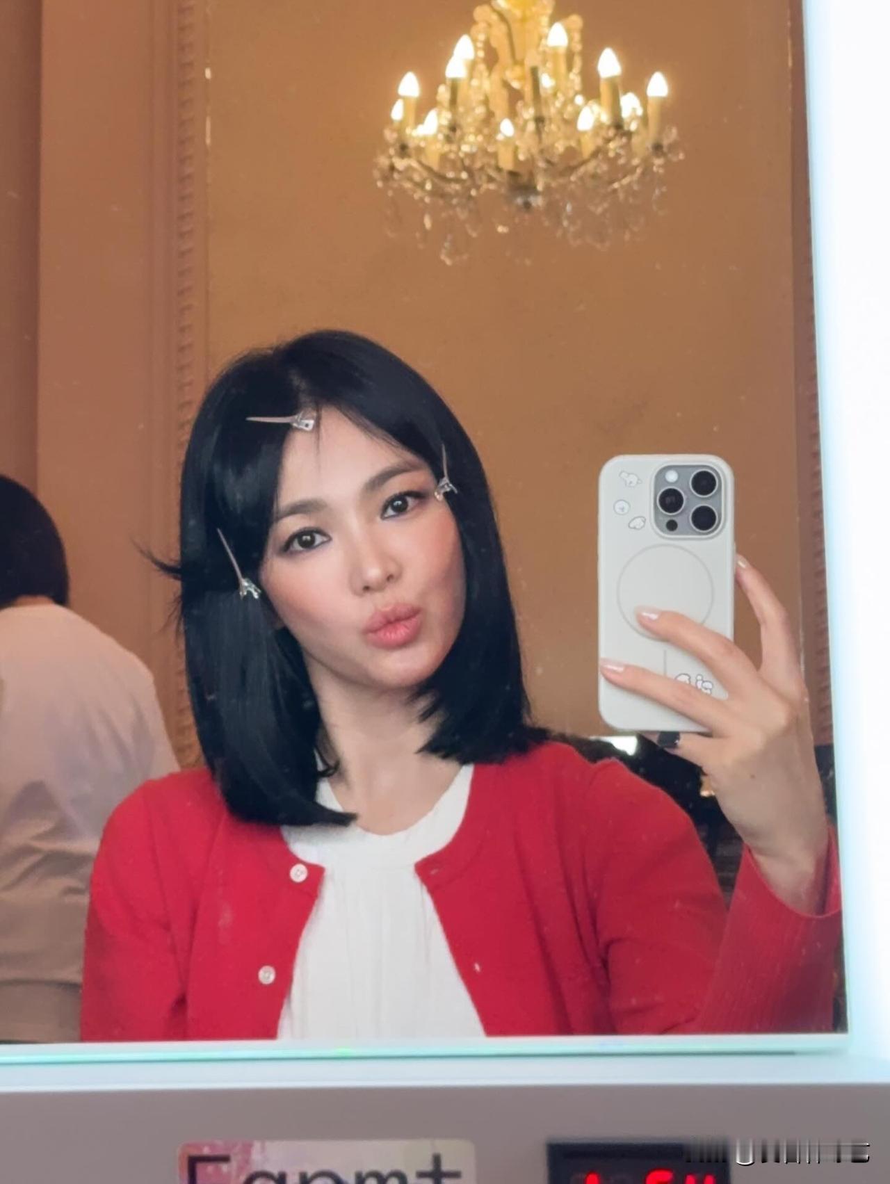 21日,演员宋慧乔在Instagram上传了多张照片。公开的照片中,宋慧乔利落短发搭配清透质感玳瑁框眼镜出镜,松弛氛围感浑然天成,自带浑然天成的自然撩人气质。一身明艳正红针织开衫内搭简约干净纯白打底衫,衬得肤白透亮气色绝佳,清淡精致的淡妆适配整套造型,清爽亮眼格外吸睛。 随后,宋慧乔又以中长波波头造型亮相,并接发,妆容精致,更添妩媚动人,再次吸引了众人的目光。