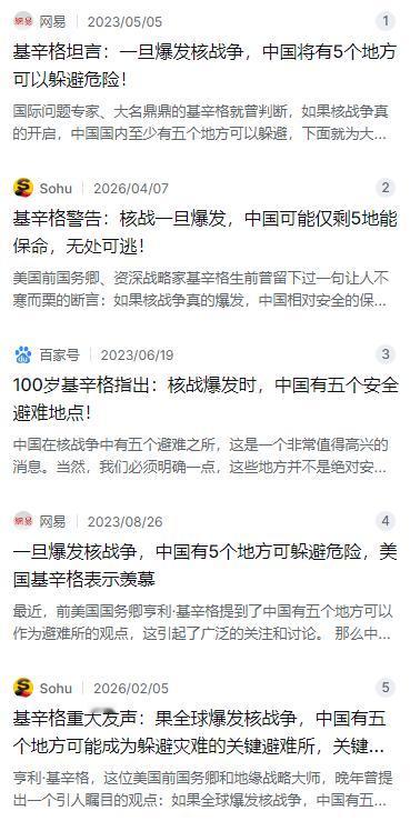 基辛格警告:核战一旦爆发,中国可能仅剩5地能保命,无处可逃!美国前国务卿基辛格,以中美关系的推动者而获得广泛认可,但他曾针对中国做出消极评判,强调核战一旦爆发,中国可能仅剩五地能够保命,其他的地方根本就是无处可逃。这话到底从何说起呢? 麻烦看官老爷们右上角点击一下“关注”,方便您进行讨论和分享,感谢您的支持! 比如青藏高原,海拔高、空气稀薄,核爆冲击波的破坏力会因为介质稀薄而大打折扣。而且那里没有大型城市和工业枢纽,对手打这个地方从成本上来说不划算。再比如四川盆地,四周群山环绕,数百米厚的山体本身就是天然屏障,能把冲击波挡在外面。还有大兴安岭深处,原始森林能吸收和分散冲击波能量,加上人烟稀少,同样不是对手优先打击的对象。西北戈壁的逻辑更简单直接,地广人稀、干燥风大,核弹打这里纯粹是浪费。 但这些分析有一个大前提——对手是理性的,会精打细算算成本。在今天的国际环境下,这个前提还能不能成立,要打一个大大的问号。 不过话说回来,核战争真的来了,光靠地理屏障远远不够。真正能让一个国家在核打击下保持生存和反击能力的,是深埋在地下的防护工程。这方面中国在几十年前就开始布局了。上世纪60年代,中苏关系急剧恶化,苏联甚至动过对中国实施“外科手术式核打击”的念头。正是在那个背景下,毛泽东提出了“深挖洞、广积粮、不称霸”的方针,全国掀起了大规模人防工程建设。 最具代表性的就是重庆涪陵的816地下核工程。这个工程从1966年开建,一直挖到1984年,动用了6万多建设大军,在山体内部掏出了一座深入地下79.6米、总建筑面积超过10万平方米的地下建筑群。816工程设计可抵御百万吨级氢弹的空中爆炸冲击,还能抗8级地震。洞体结构采用高标号钢筋混凝土,墙体厚度在1.2米以上,整个轴向叠加全长25公里。这种“钢筋铁骨”的结构,让它在极端情况下具备了极高的生存能力。 像816这样的工程不止一个。湖南临湘的6501工程、湖北咸宁的131工程、黑龙江哈尔滨的7381工程等,都是在60到70年代集中修建的,共同构成了中国地下防护体系的核心。这些工程不仅用来保护关键的工业和军事设施,也为核战争的生存提供了最后的保障。 当然,最好的生存保障不是挖洞,而是让对方不敢动手。这就是核威慑的核心作用。中国在核力量建设上走了一条独特的道路。从拥有核武器的第一天起,中国就承诺在任何时候、任何情况下不首先使用核武器,坚持自卫防御核战略,始终把核力量维持在国家安全需要的最低水平。这个承诺几十年没有变过,在国际上赢得了广泛尊重。 与此同时,中国的核打击能力在近年来取得了质的飞跃。2025年九三阅兵现场,惊雷-1空基远程导弹、巨浪-3潜射洲际导弹、东风-61陆基洲际导弹等首次集中亮相,标志着中国正式集齐了陆海空“三位一体”战略核力量。军事专家指出,海基核力量在遭受第一波打击后的生存概率可以达到90%以上,这意味着中国具备了可靠的二次核反击能力。空基核力量的灵活部署和快速反应特性,又给战略威慑加了一道保险。这三张牌打出去,任何对手在考虑对中国动手之前,都必须掂量掂量后果。 把这几块拼在一起,就形成了一个完整的图景。地理屏障提供的是天然条件,地下工程提供的是人造保障,而核威慑才是最终的底牌。三者叠加,构成了中国在核战争风险面前的“三维防护”能力。 更重要的是,中国不仅靠实力说话,也积极参与国际核安全治理。中国推动五核国发表《关于防止核战争与避免军备竞赛的联合声明》,呼吁有关国家缔结“互不首先使用核武器条约”。从维护全球战略稳定的角度出发,中国以实际行动降低核冲突风险,推动核安全规则的完善。 回过头来看“基辛格五地论”,不管它是不是真的出自基辛格之口,它揭示的问题值得重视——核战争的威胁是真实存在的。但我们不应该被吓住。中国从天然地形到人工防护工程,再到核威慑力量,已经构筑起一套综合防护体系。这套体系的底气,来自几十年的战略积累,也来自持续升级的技术实力。 正如《新时代的中国军控、裁军与防扩散》白皮书所强调的,核武器用不得、核战争打不得。中国始终主张和平发展,反对军备竞赛,但同时也有能力保护自己的安全。最好的防核武器,是让对方知道动手的代价太大。有了实力做底气,再加上规则做约束,和平的天平才能真正稳得住。