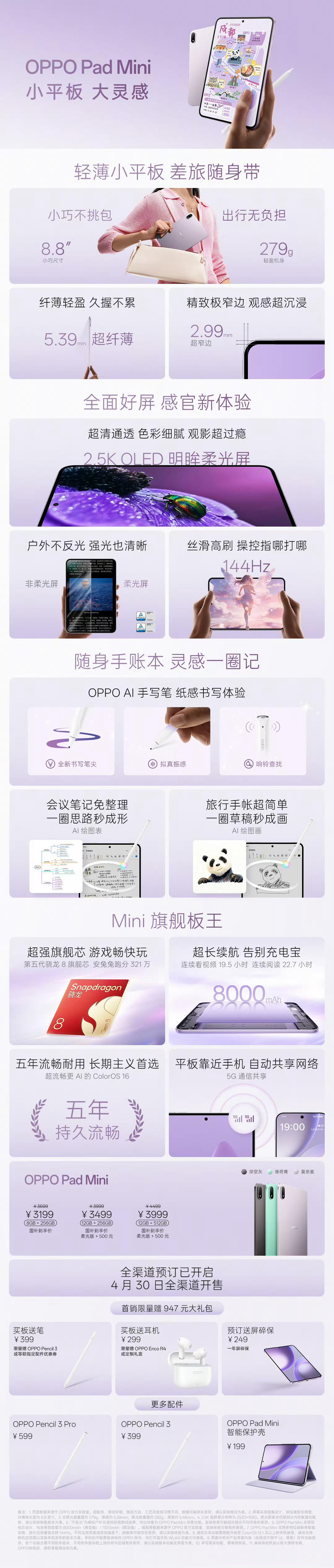OPPO Pad Mini主打小巧便携,8.8英寸的尺寸单手就能握持,兼顾了清晰画质与流畅高刷,不管是通勤追剧、随手记笔记还是轻度娱乐都很合适,轻薄机身长时间拿着也不累。