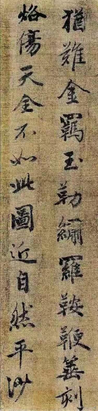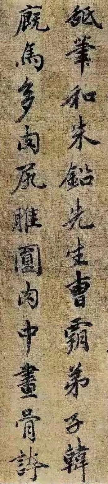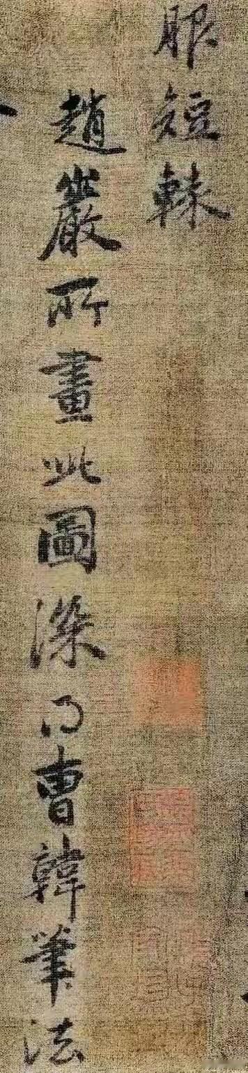 大德五年,赵孟頫58岁时为五代赵岩《神骏图》题跋,这短短数行尽显成熟行书的极致风神。 从书法看,用笔纯以中锋为主,线条圆劲流畅,提按转折自然,起收含蓄。像撇捺舒展却不张扬,墨色浓淡、枯润搭配巧妙,牵丝灵动,筋骨暗藏。结体端庄宽绰,重心稳,欹正相生,“神”“骏”“图”等字各有特色。章法疏朗,字距行距宽,留白妙,气韵贯通。 跋文“赵岩所画此图,深得曹、韩笔法”,精准鉴定还高度赞了画作。这书画合璧之作,真是让后人只能仰望!
