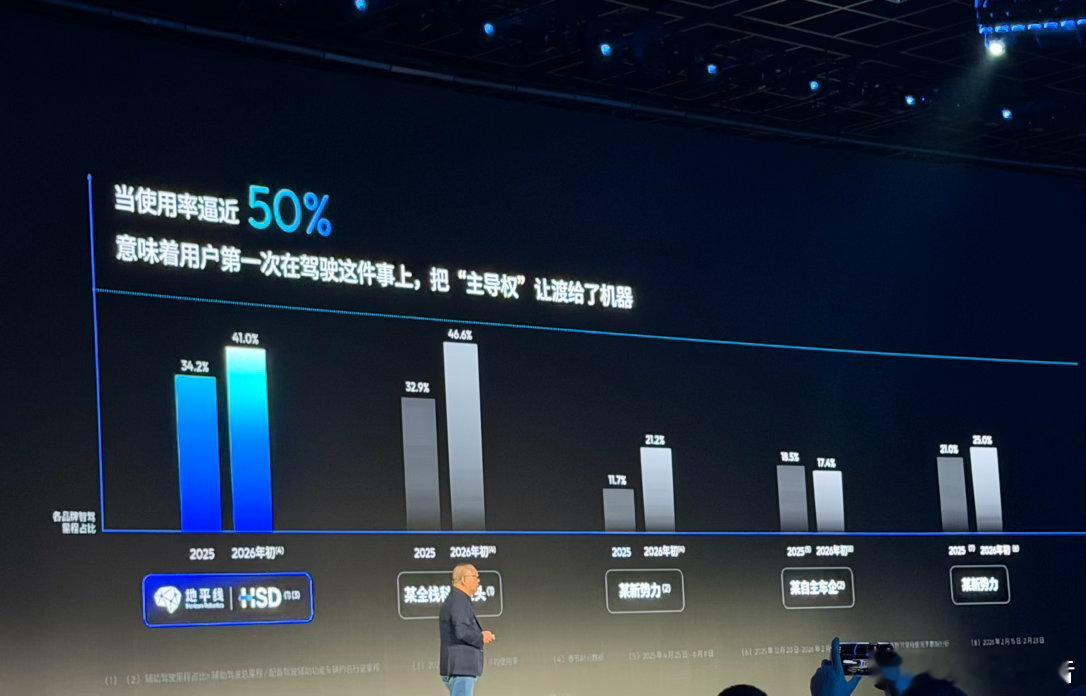 地平线今年努力的目标是,智驾里程占比迈过50%,余凯说这代表的是信任里程碑,智驾里程多于人驾里程。2026地平线产品技术发布会大v聊车