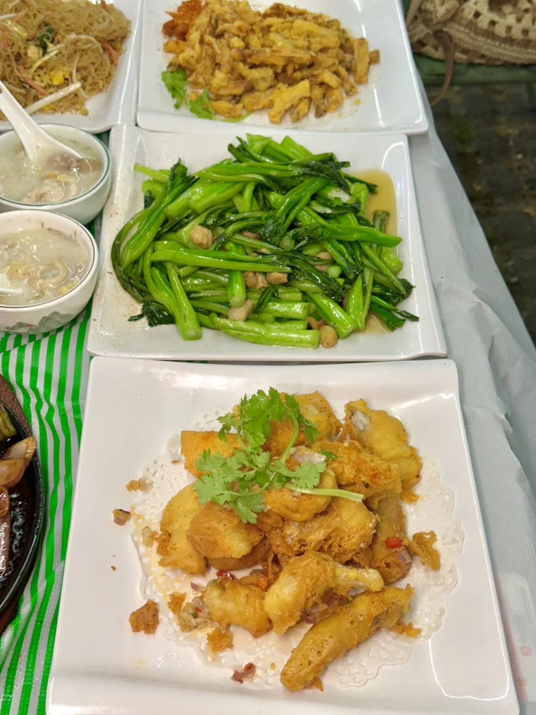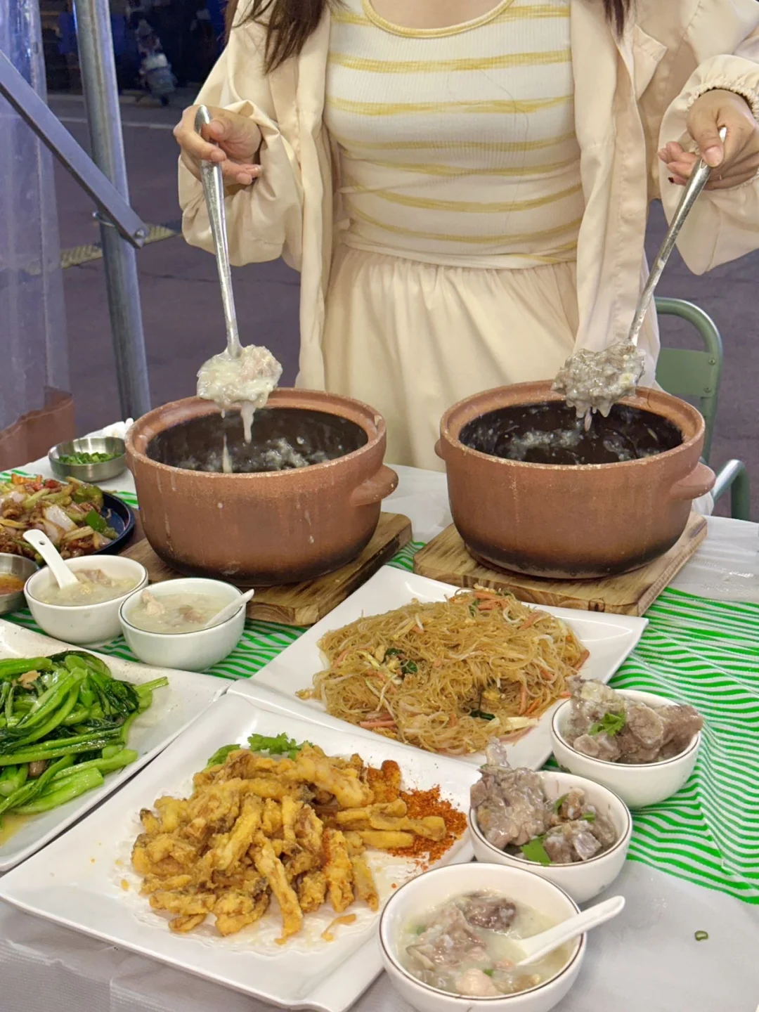 来清远宵夜直接锁s这家🔥 本地人私藏大排档,每一道都封神 🍲咸骨粥 粥底绵好绵,不是水水的那种 加了花生米+腐竹,口感层次拉满 咸香入骨,肉肉好多,直接用手拿着啃,舒服! 🐟椒盐九肚鱼 外酥里嫩天花板,用的油好靓 没有油溢味,下酒绝配 🥩铁板牛仔骨 铁板滋滋响,小心不要被烫到!! 黑椒味浓郁,肉质好嫩 🐷铁板竹肠 处理得超干净,无异味 爽脆弹牙,不会过咸
