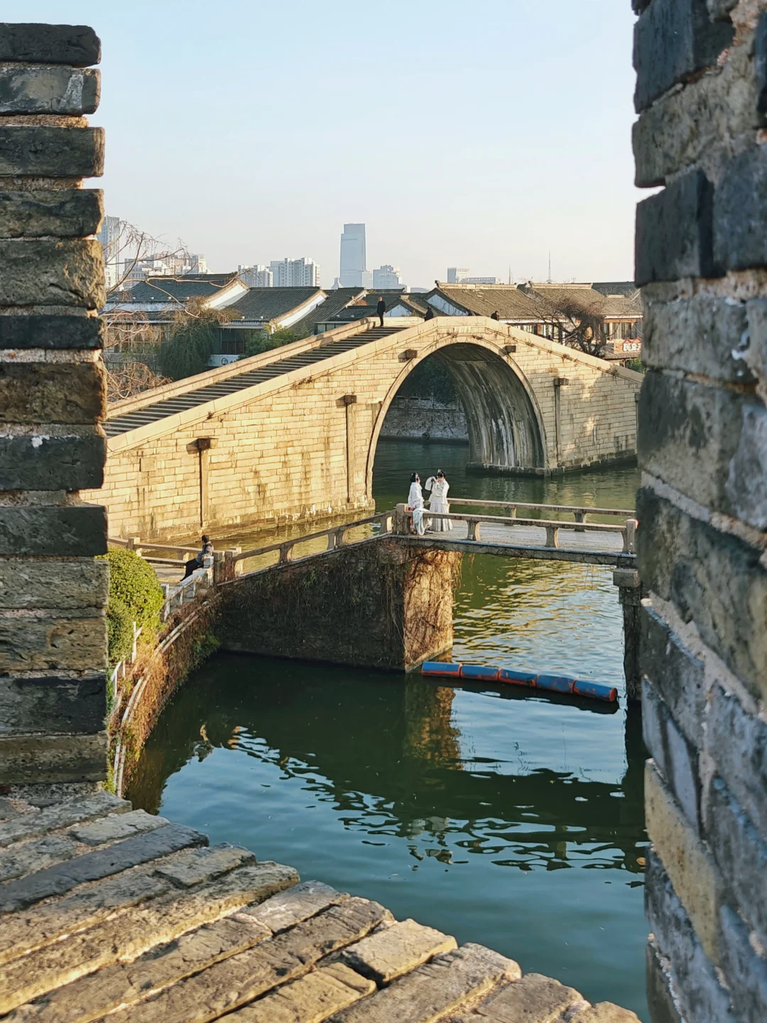 横跨大运河,始建于北宋,现存桥梁为清同治十一年重建,是苏州市区现存蕞高的古石拱桥。王安石《泊舟姑苏》写“朝游盘门东,暮出阊门西。”,有一说是他在端午节纪念伍子胥时站在吴门桥上触景生情所作。