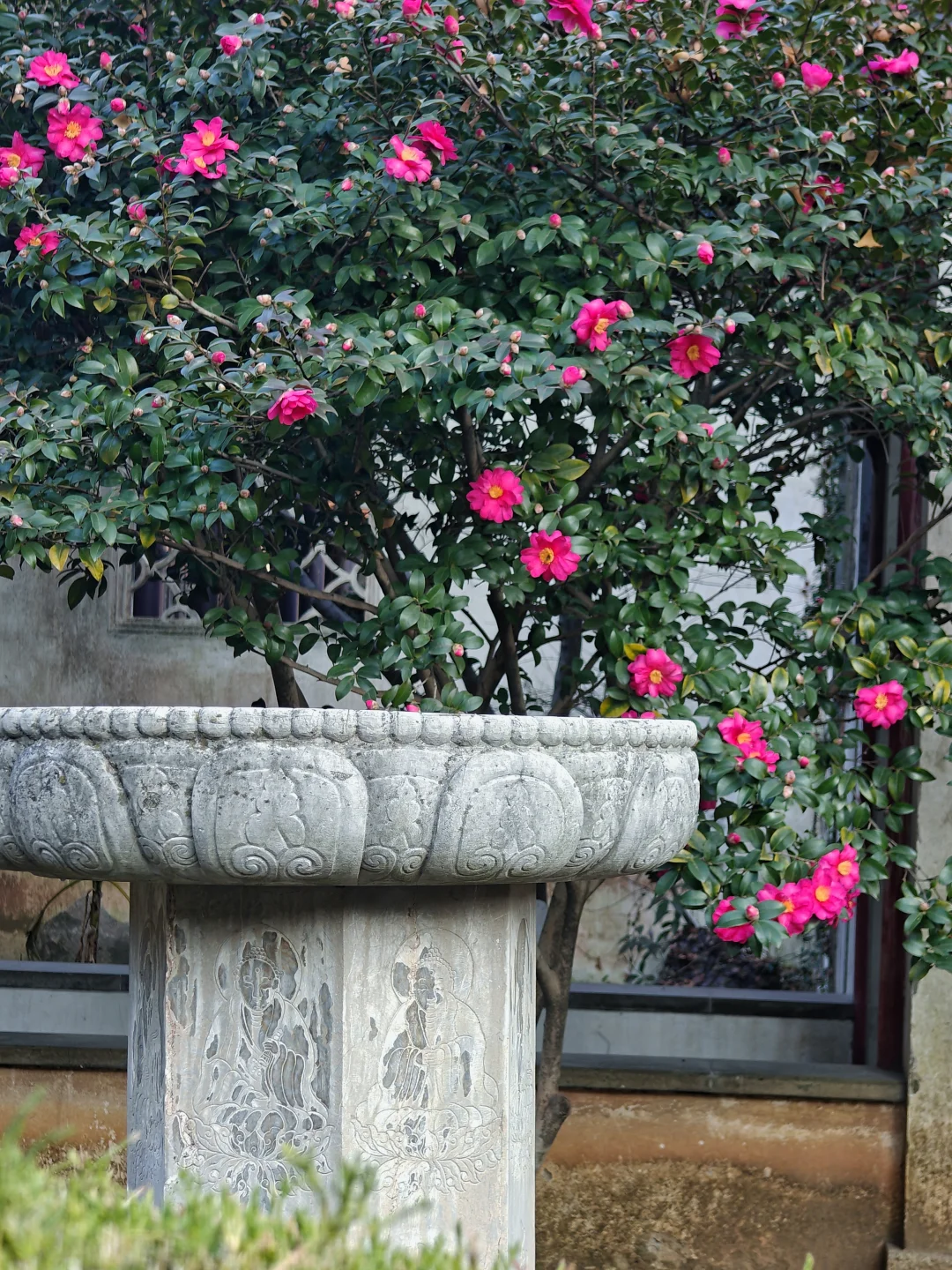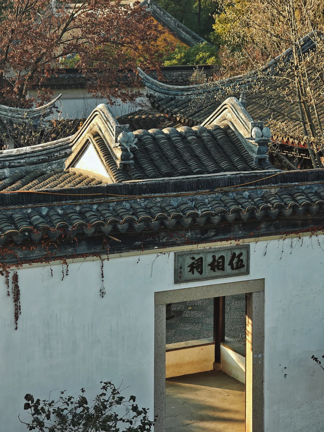 🌸景区内还有一个伍相祠,始建于元代,现存的应该是新建,只有台基是老的。我去时,院里有几株盛大的茶梅开得很漂亮。