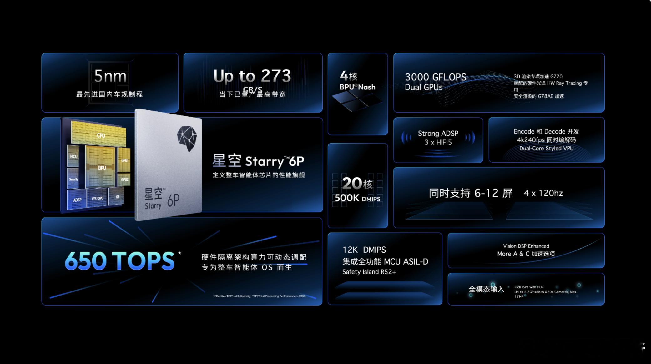 【星空 Starry 6P 发布:舱驾融合芯片如何定义下一代智能车】集成是计算系统不变的规律,车端计算正随着AI模型的融合走向统一。地平线星空系列基于全阶产品布局,推出星空 Starry 6P、6H芯片。星空 Starry 6P 作为中国首款舱驾融合整车智能体芯片,它以 5nm制程、650TOPS算力和273GB/s 带宽,实现顶级智舱、智驾与端侧大模型性能的全面领先。