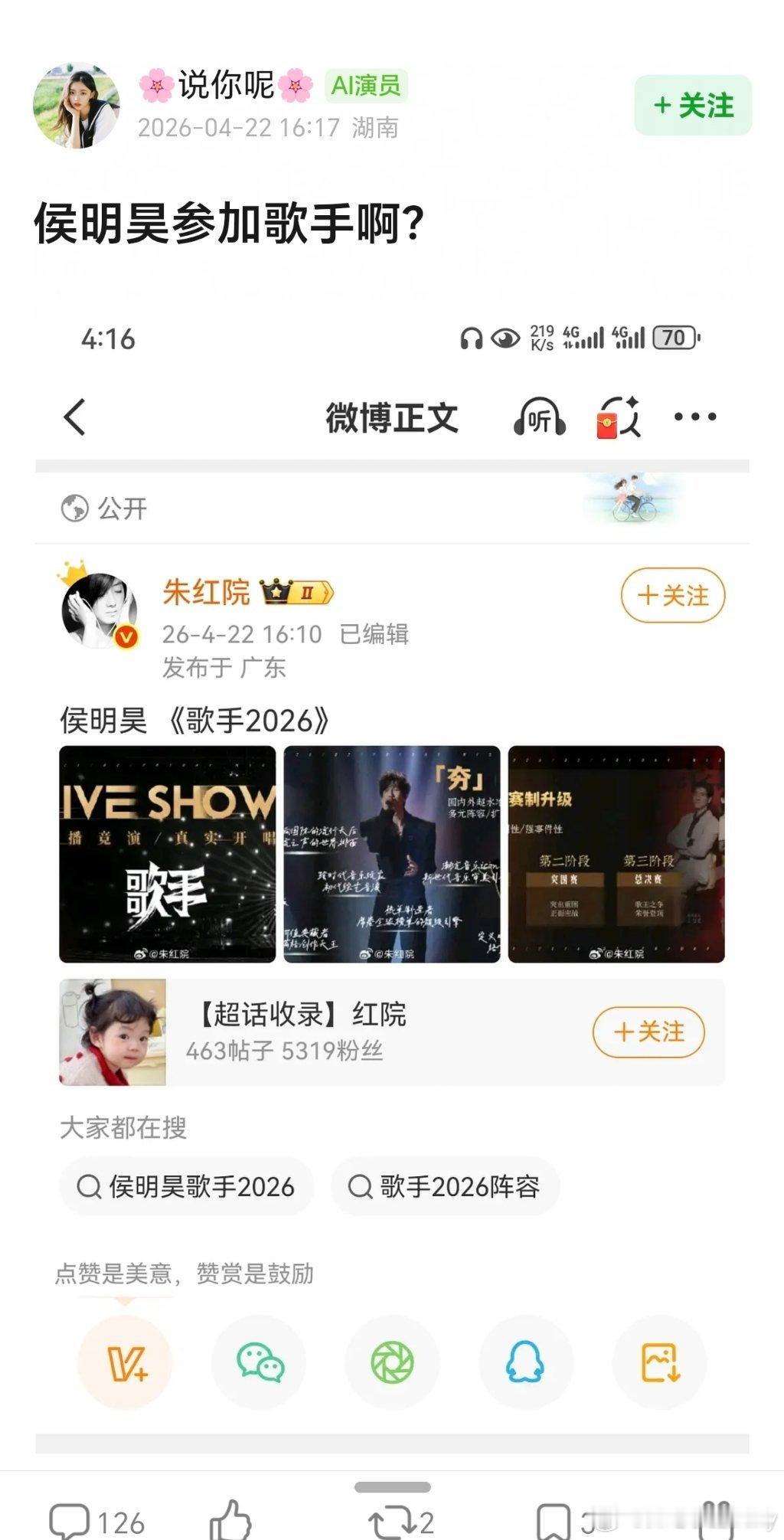 侯明昊真的要去参加歌手了,唱功过关才有机会参加这种主流音综吧!