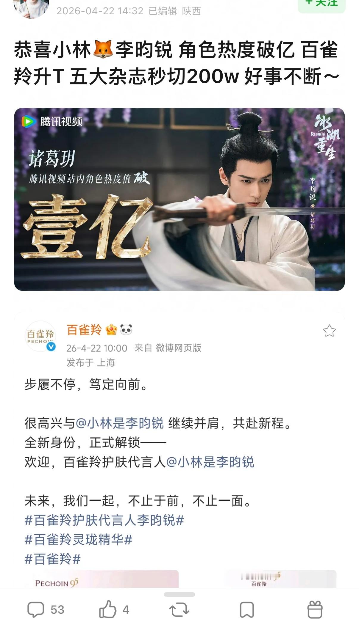 1、杨超越也要签约虎鲸,目前在深度接触《剑阁闻铃》,男主还是李昀锐不变。2、王鹤