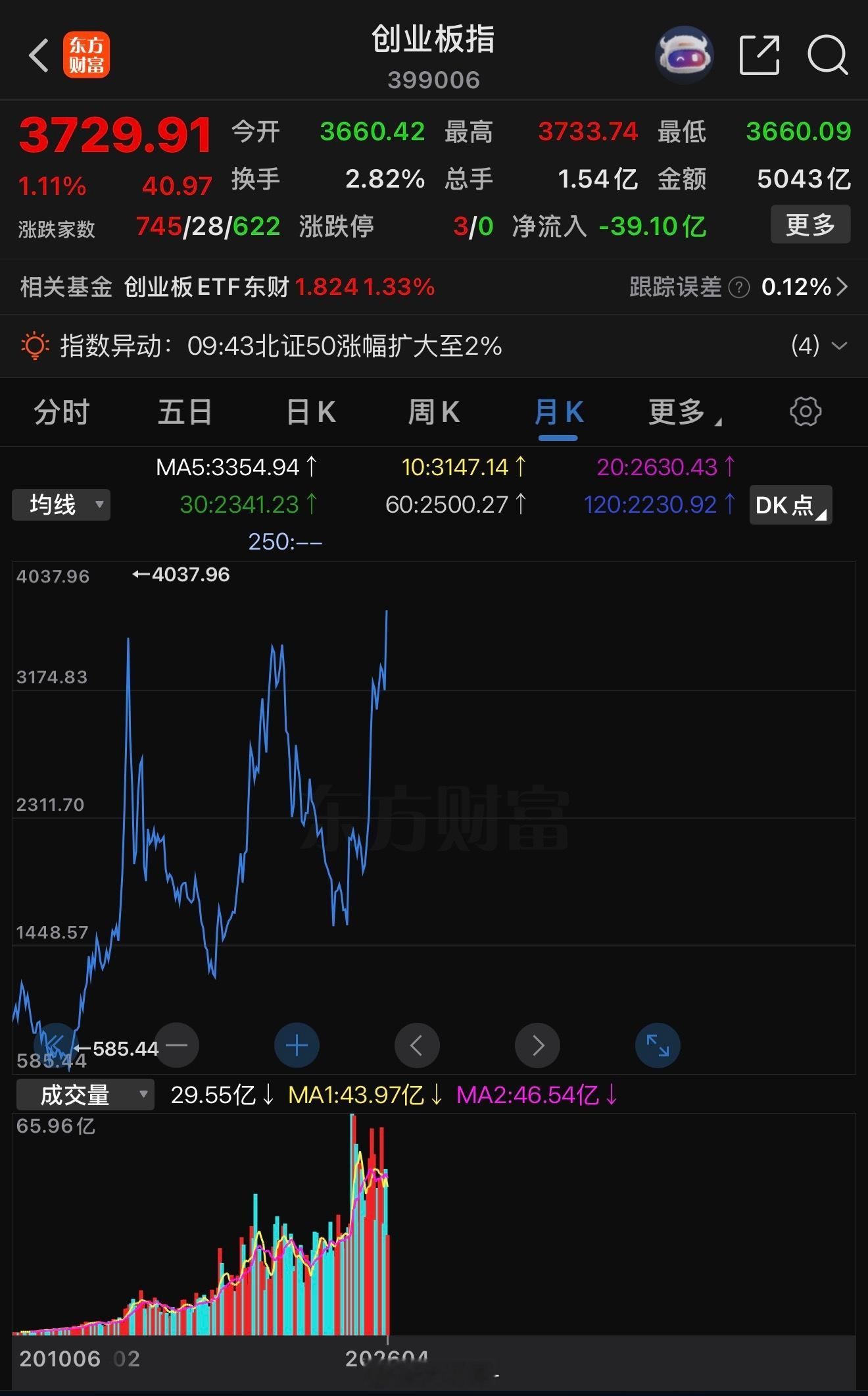• 2026年这次3696点的新高,PE-TTM仅44倍左右,处于近十年43%的历史分位,也就是说,它比过去十年里57%的时间都要便宜。支撑股价的,是实打实的业绩:2026年一季报,中际旭创净利润同比增长262%,新型储能装机量同比激增472%,AI光模块龙头的订单甚至排到了2028年,权重股的业绩增速普遍在30%-200%之间。
