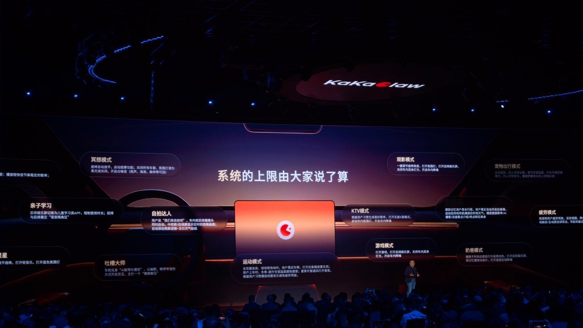 KaKaClaw⽀持基于路线习惯、 驾驶⻛格、 ⽤⼾状态感知与语⽓偏好的多维 度⼈格设定, 与⽤⼾建⽴个⼈默契。 通过⻓时序记忆, KaKaClaw会记住⽤⼾的驾⻋习惯、 常⽤路线、 ⽣活品 味、 情绪偏好。 智驾与智舱共享⼀份记忆, 这些记忆驱动系统持续进化, ⾃动⽣成专属的场景 技能, 让KaKaClaw成为你路感+情感同频的灵魂伴侣。