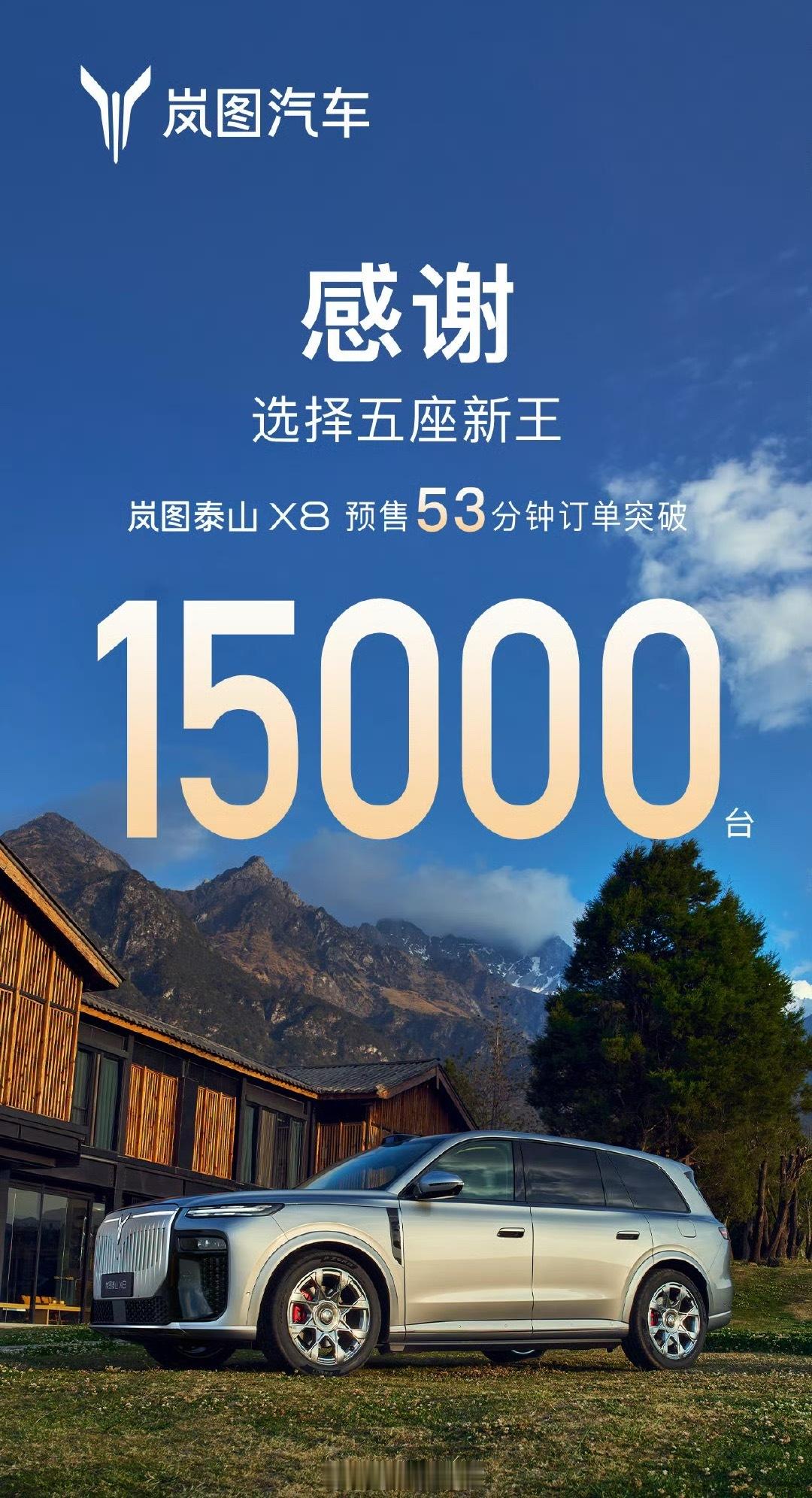 岚图泰山 X8 预售 53 分钟,订单突破 15000 台。