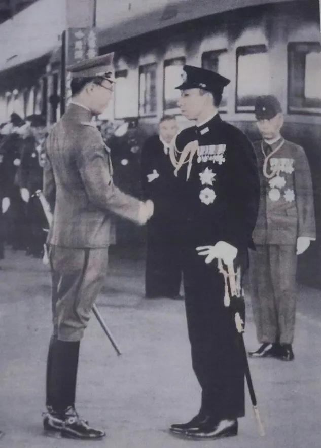 1942年,日本天皇裕仁的弟弟高松宫宣仁亲王来到长春,溥仪来到火车站迎接握手时的一幕,这次高松宫宣仁前来,是为了给傀儡“伪满洲国”庆祝“建国”十周年活动的。 - 虽然从照片中来看,溥仪与高松宫宣仁看起来似乎是对等的,但是实际上溥仪就是一个被任意摆布的傀儡,毫无丝毫实权可言,完全就是日本主子让他怎么配合,他就得乖乖配合。