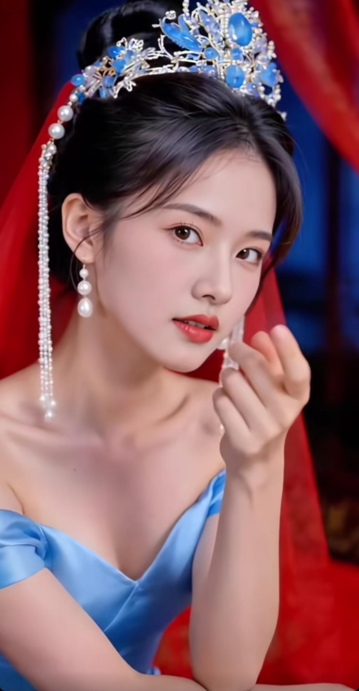 “古风美人,红纱轻掩,蓝裙飘逸,宫廷风韵”🌸👗👑分享一下你随手拍下的照片 古典汉服美人 古典国风美女
