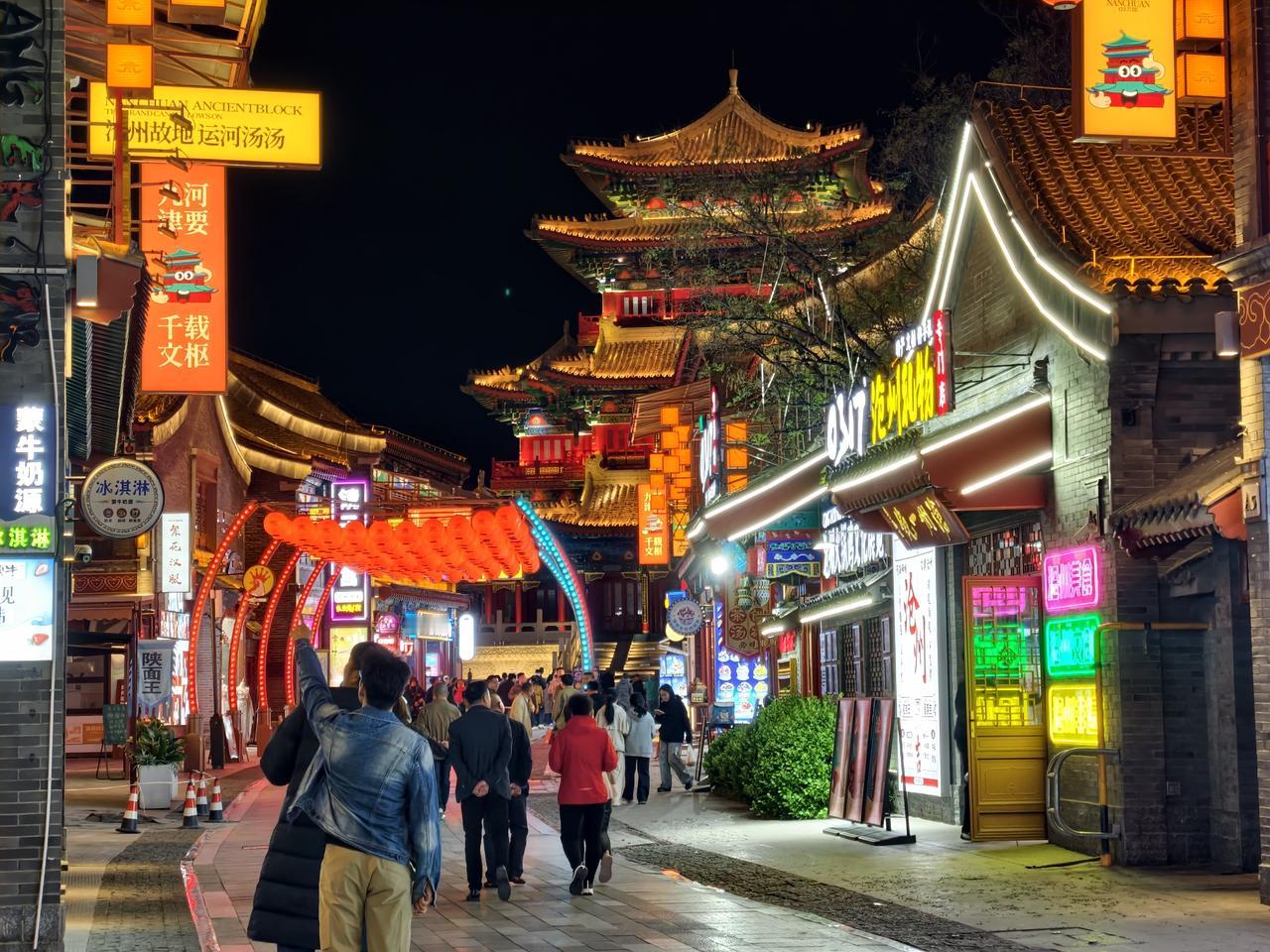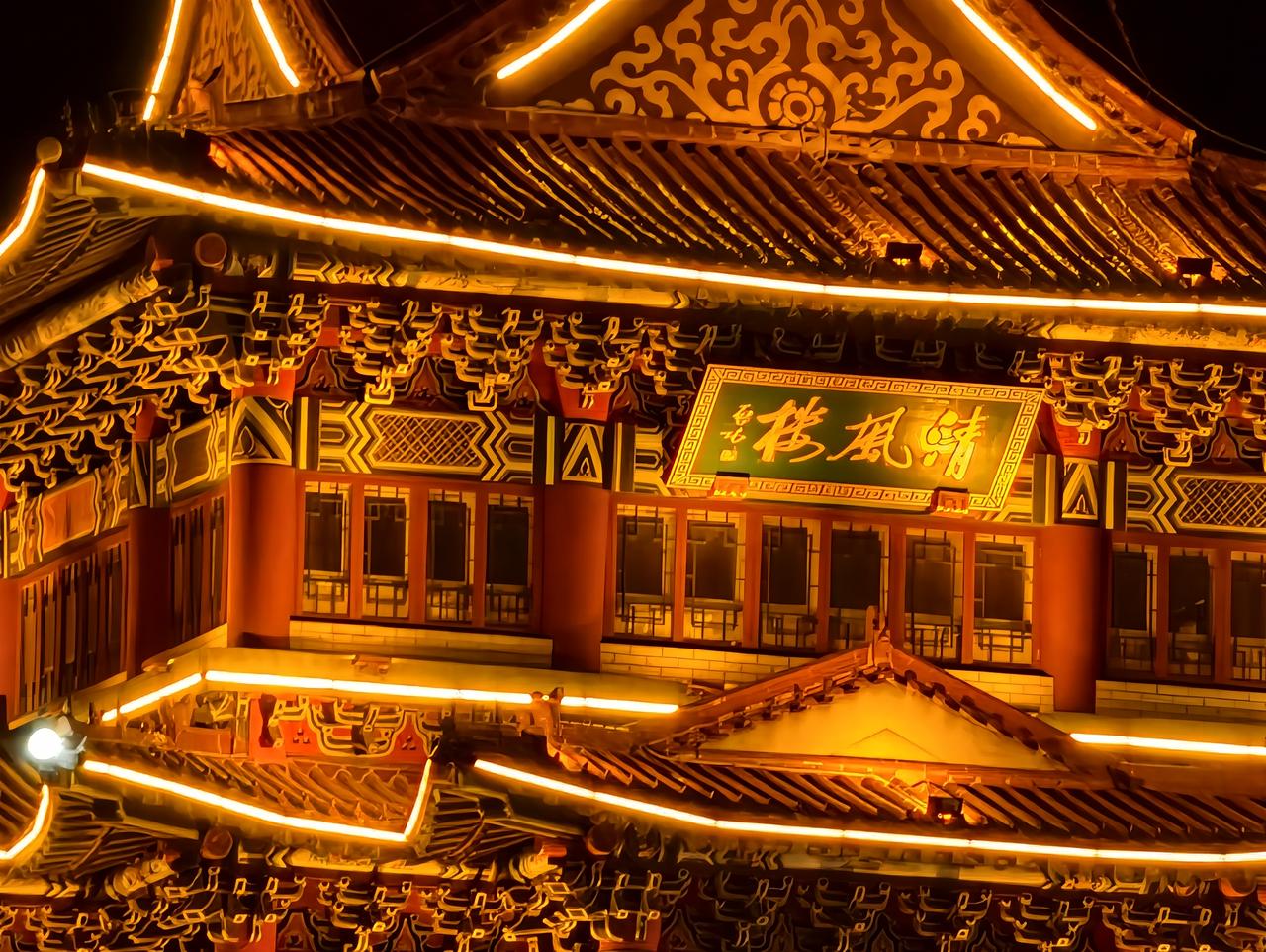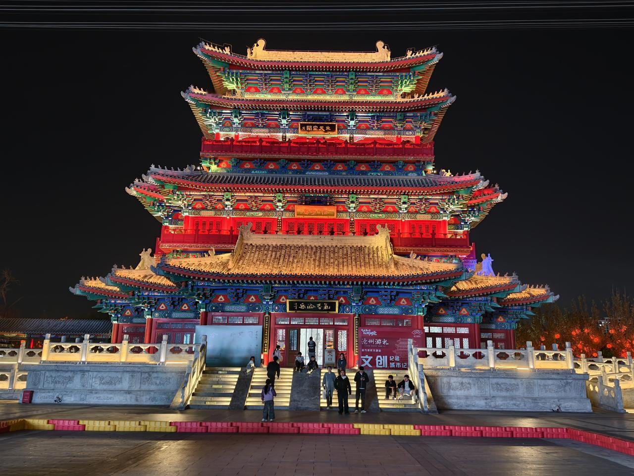 狮城沧州(1): 到达沧州时近傍晚,稍作小憩,打卡南川老街。运河畔的老街,整体为明代风格建筑,街边店铺林立,热闹非凡,此处有朗吟楼、清风楼、南川楼! 朗吟楼最早建于明朝,传说八仙之一的吕洞宾曾登此楼,因其诗句“三醉岳阳人不识,朗吟飞过洞庭湖”而得名,晚上朗吟楼可登楼,视野超赞,一览老街及运河夜色风光! 南川楼是老街的又一核心建筑,大运河畔的名楼,因酿酒而闻名,明清时曾是沧州名胜之一!清风楼距老街稍远,历史可追溯至西晋,最早有文字记录在元代! 沧州的夜晚属于南川老街和三大名楼,夜景很美,灯光璀璨,五光十色,十分迷人!白天又经过老街及清风楼时,感觉已变得平淡无奇!! 沧州旧街景 沧州南川楼之夜