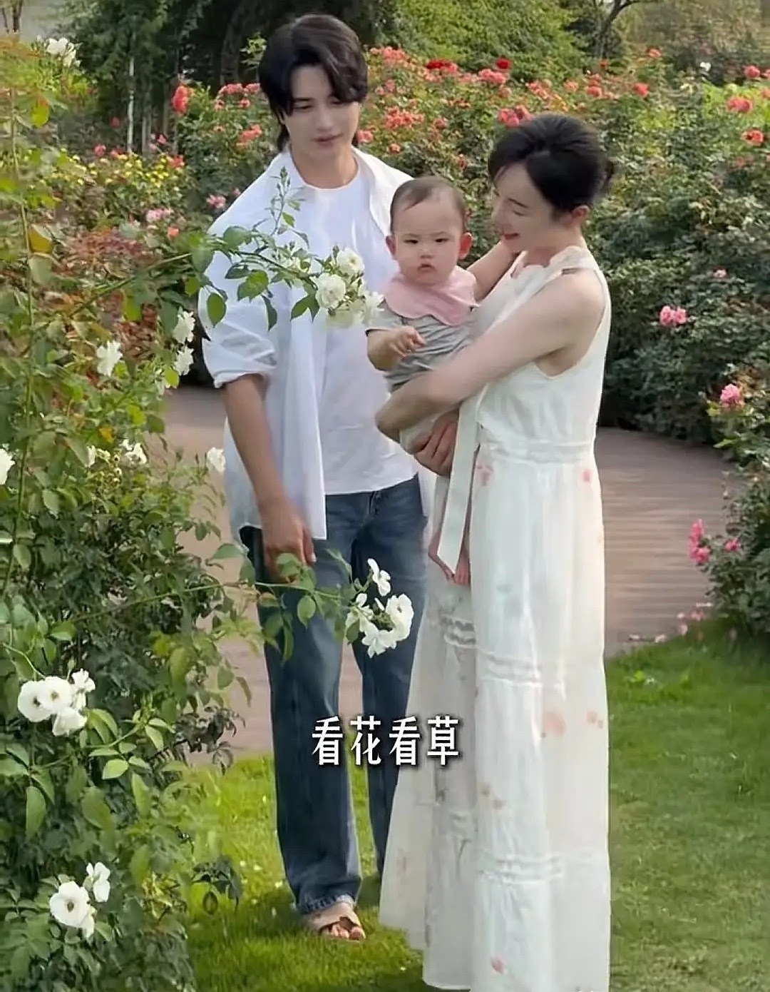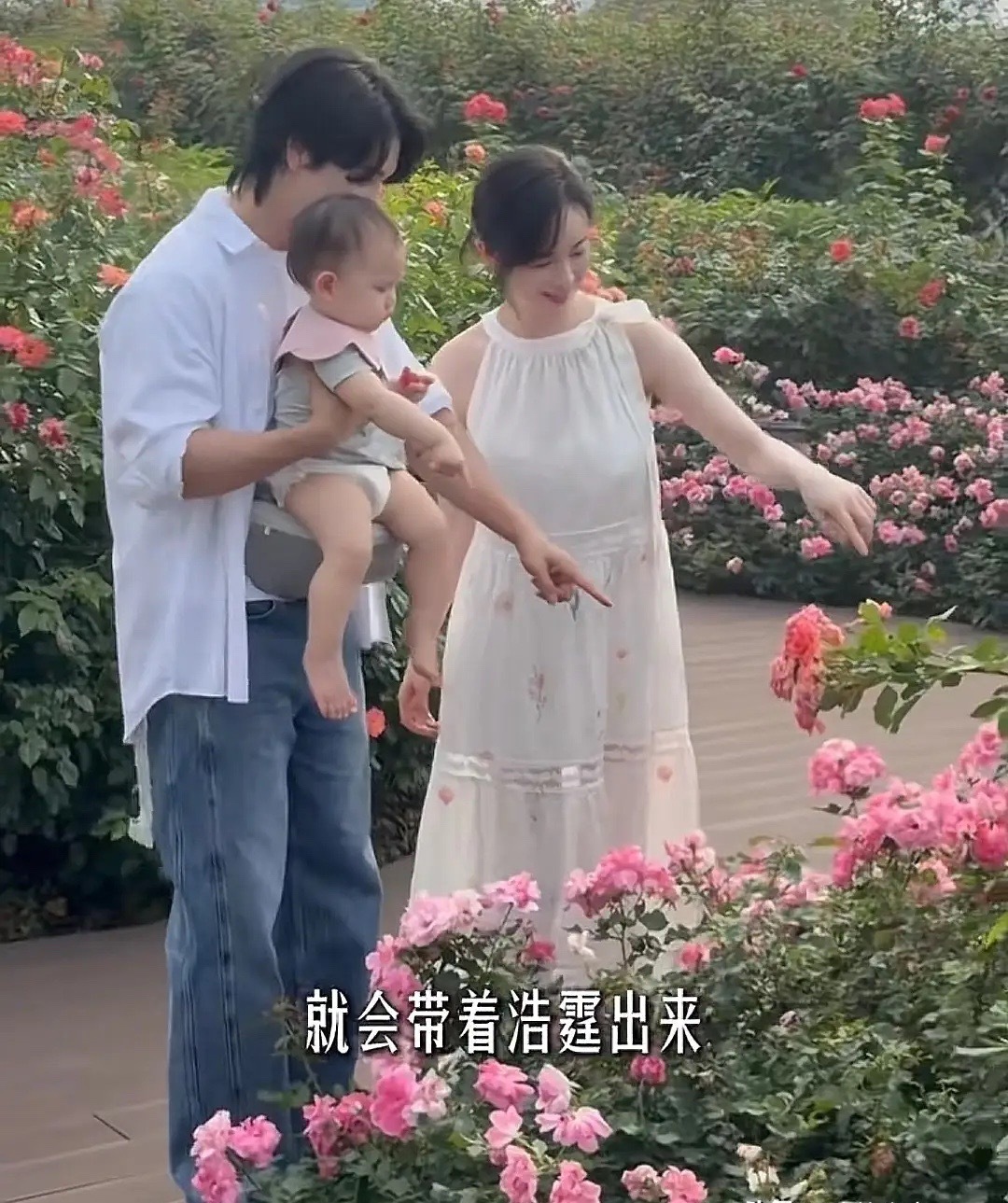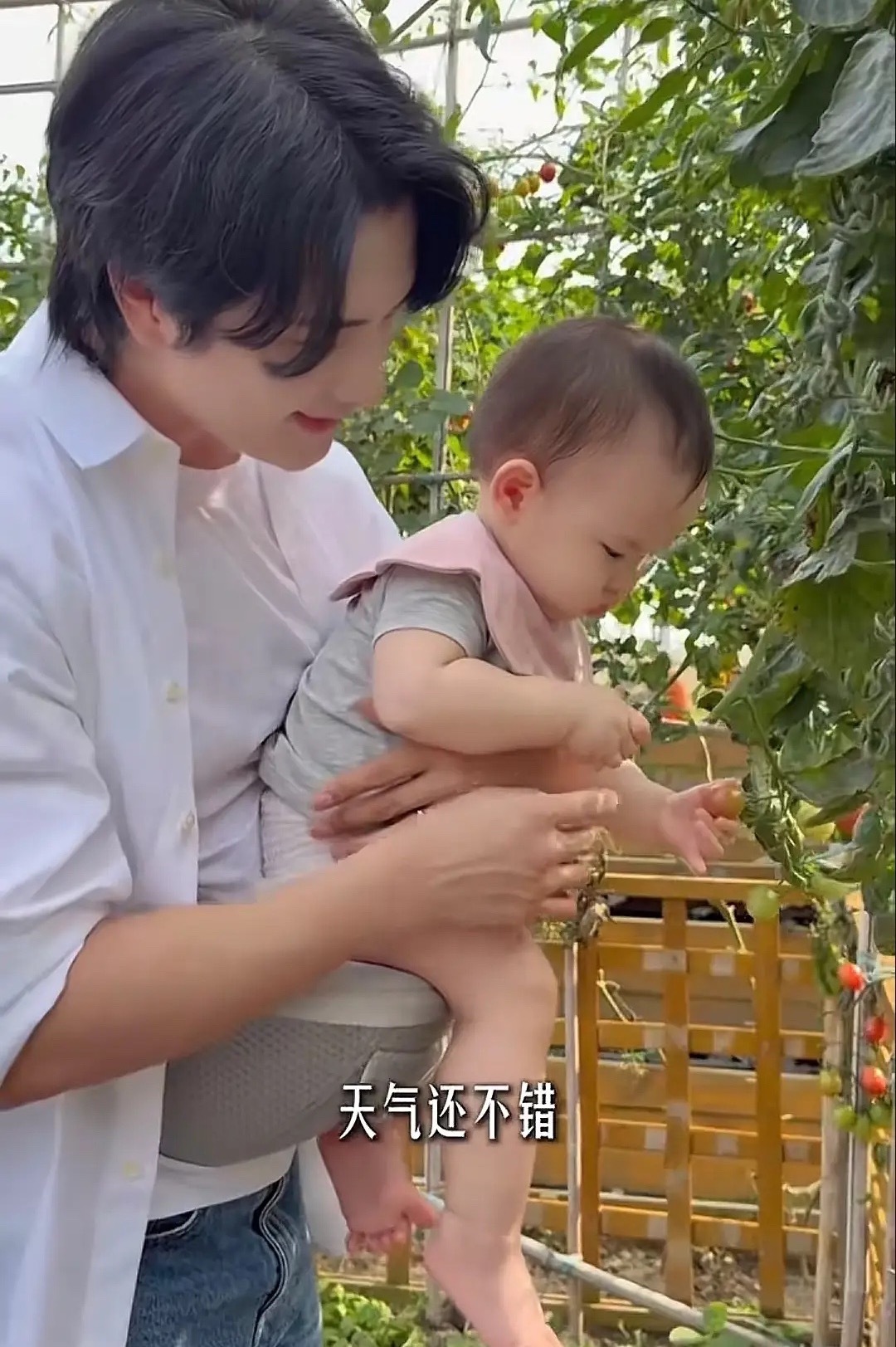张檬在广州新家小区溜娃,Dylan戴着粉色口水巾,又白又胖好可爱。孩子11个月了还在用腰凳,穿着尿不湿,坐在爸爸身上十分听话。